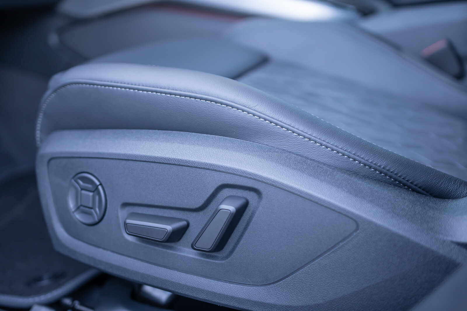 • Kierownica sportowa, 3-ramienna, spłaszczona u dołu i na górze, wielofunkcyjna, z przełącznikami kołyskowymi, obszyta skórą