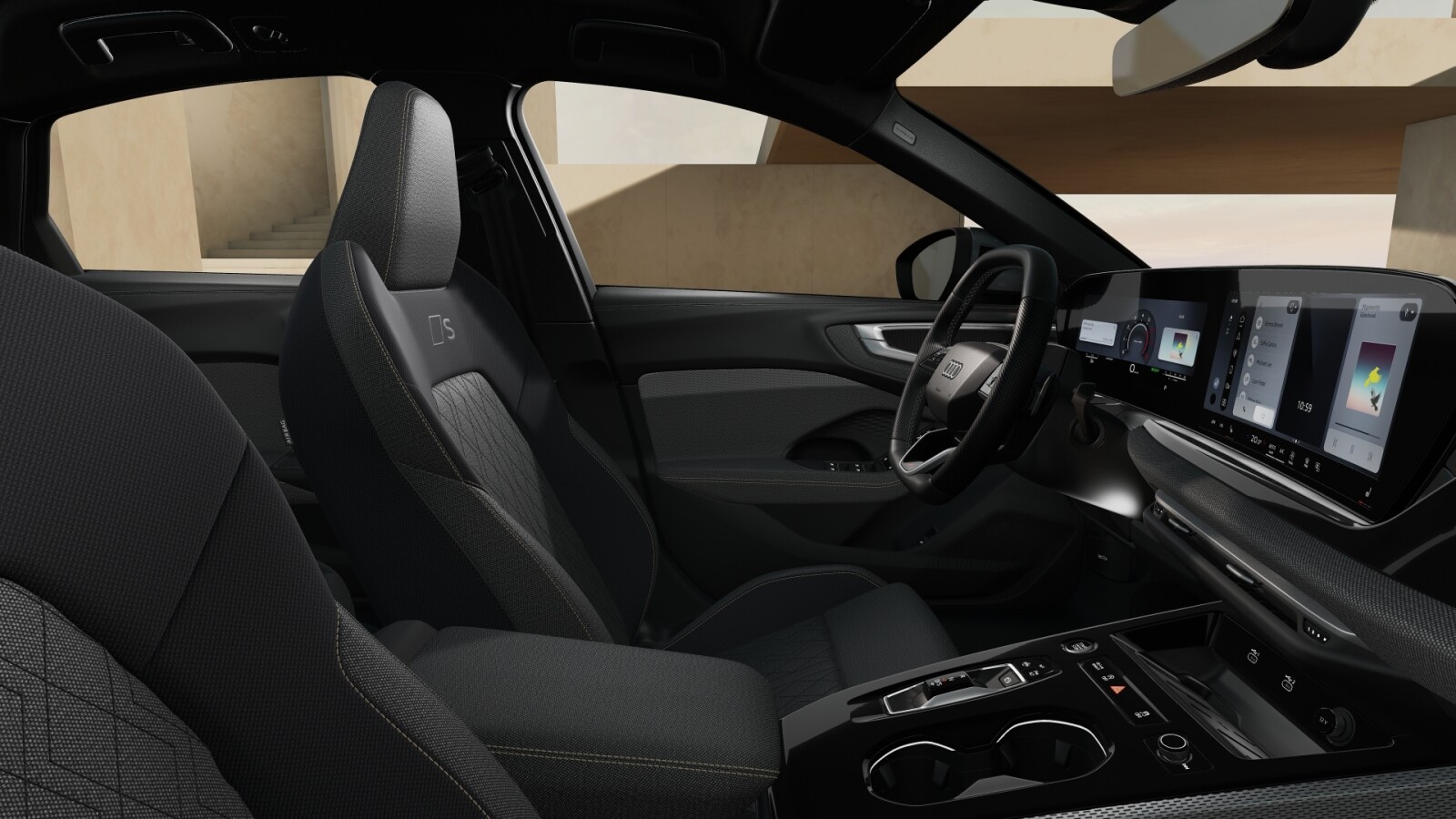 – Pakiet Interieur S z siedzeniami sportowymi, tkanina w kolorze czarnym-szarym