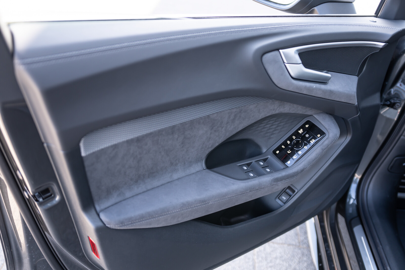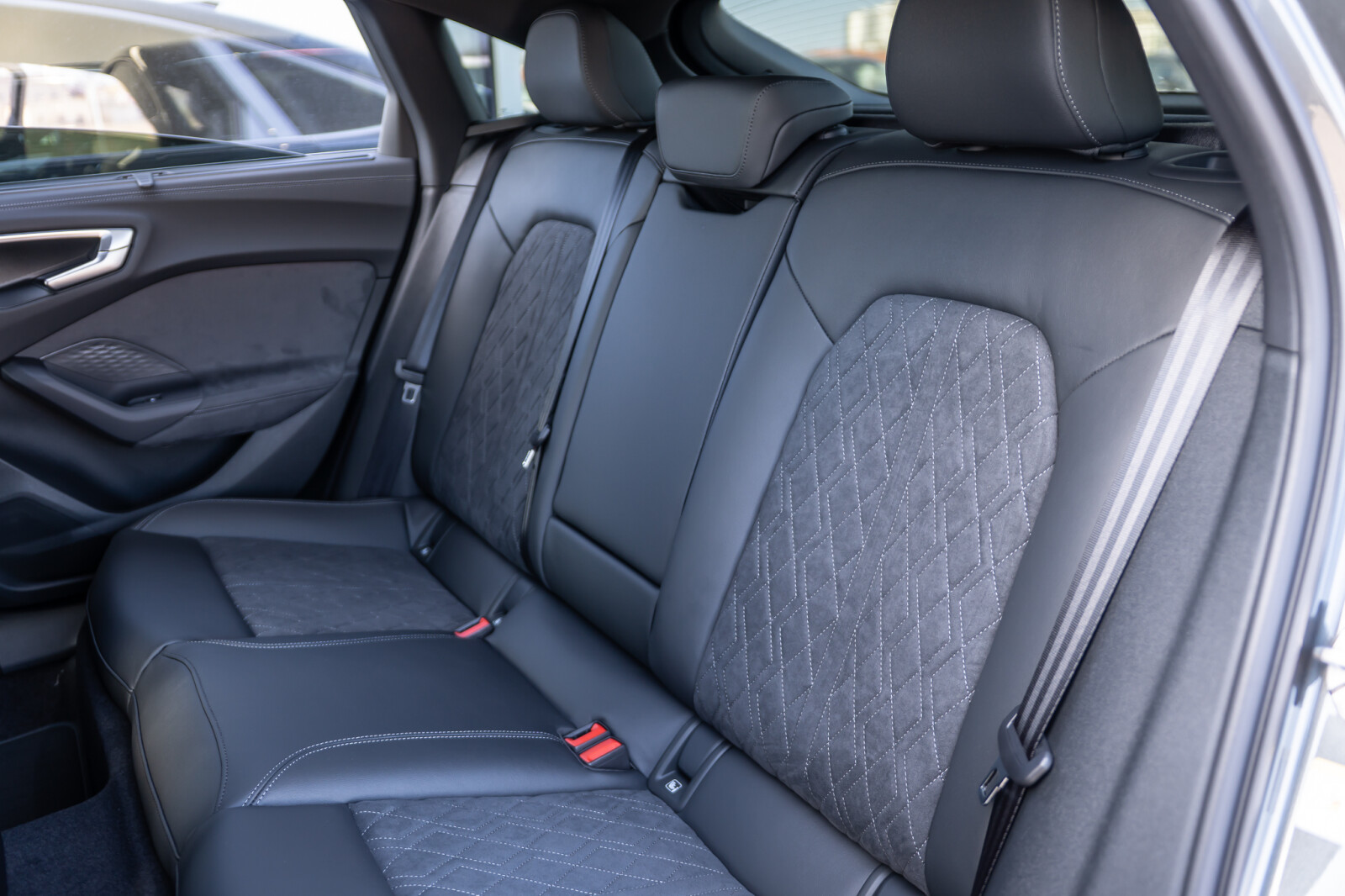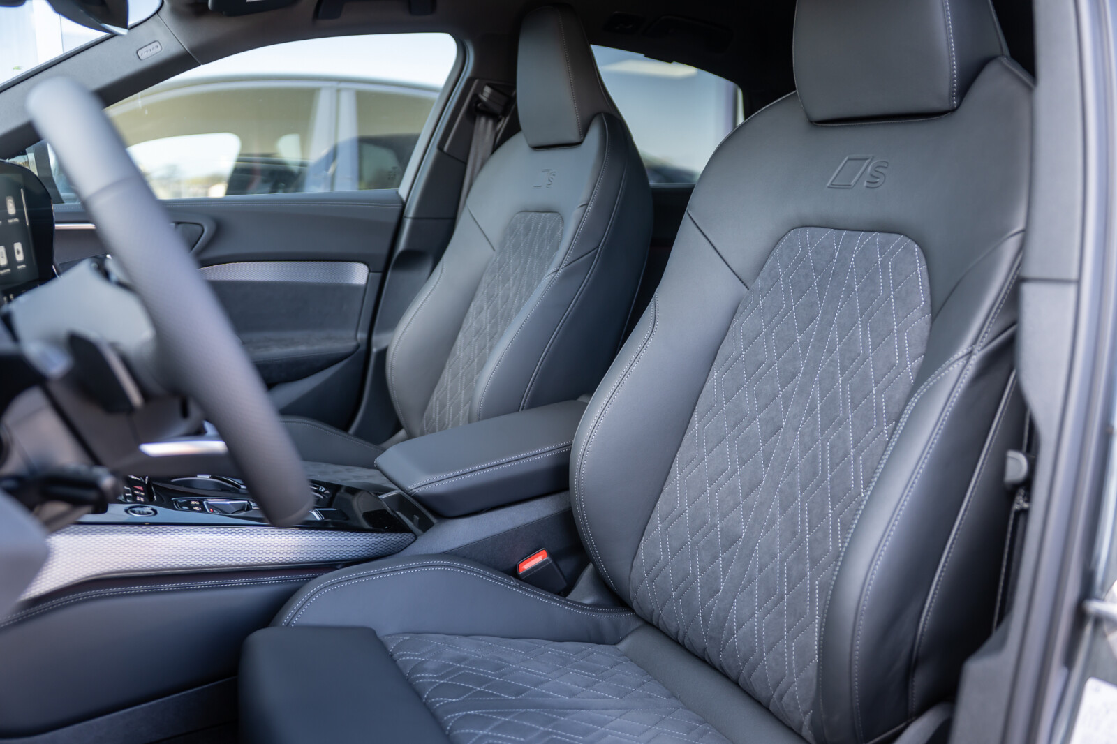 • Wnętrze z siedzeniami sportowymi, kombinacja mikrofibra Dinamica/skóra w kolorze czarnym, czerwony szew Audi Sport GmbH