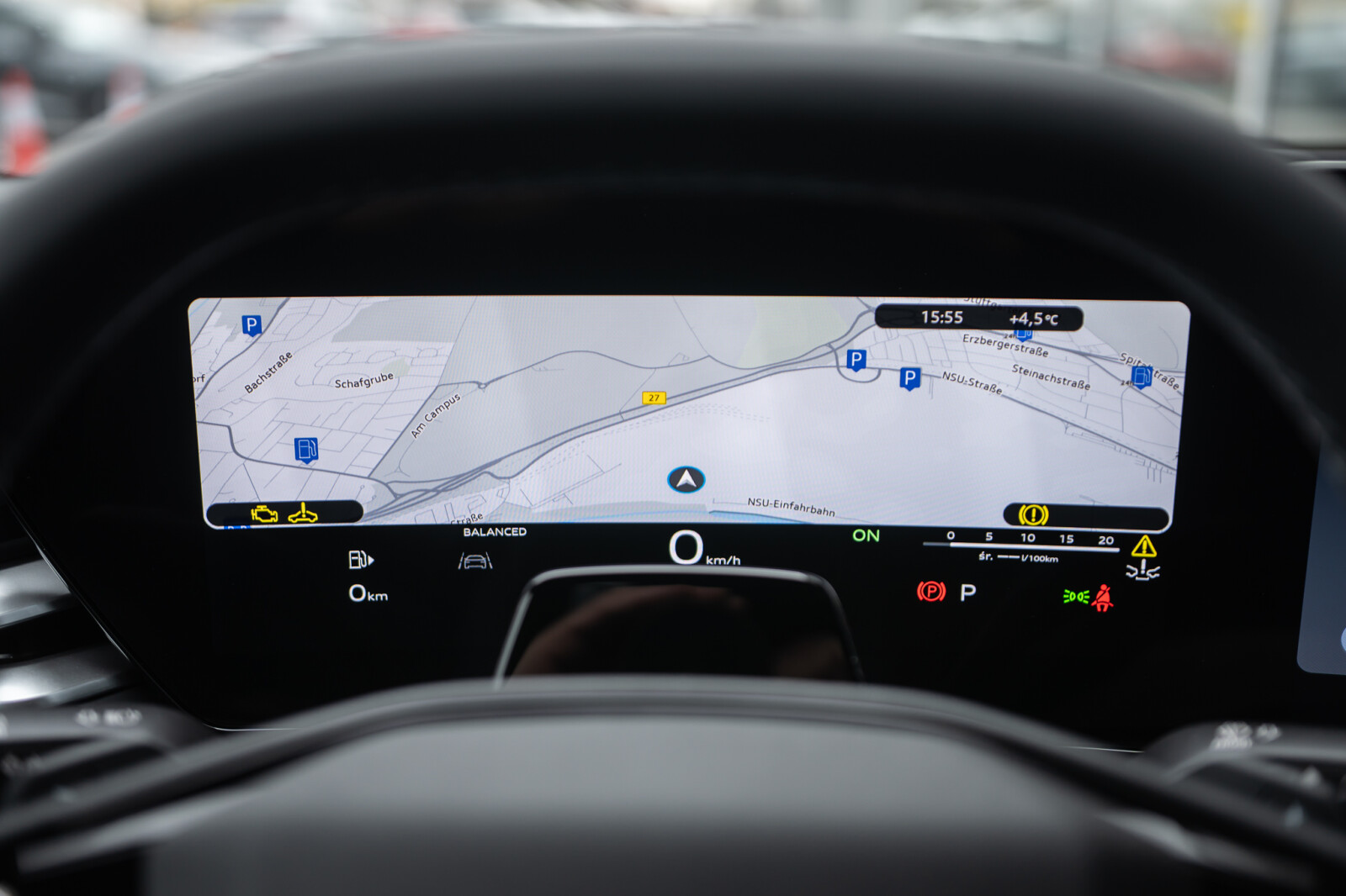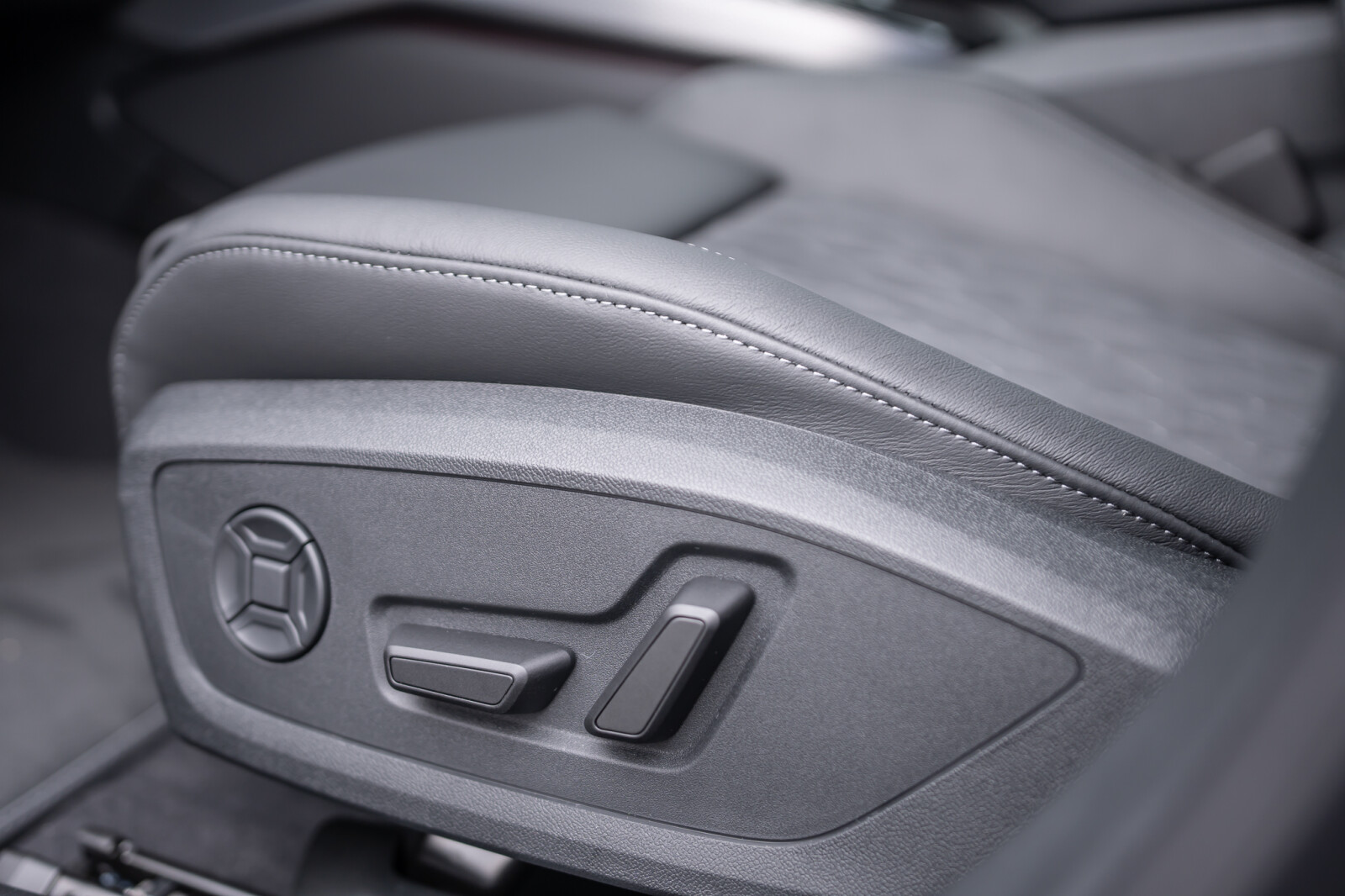 • Kierownica sportowa, 3-ramienna, spłaszczona u dołu i na górze, wielofunkcyjna, z przełącznikami kołyskowymi, obszyta skórą