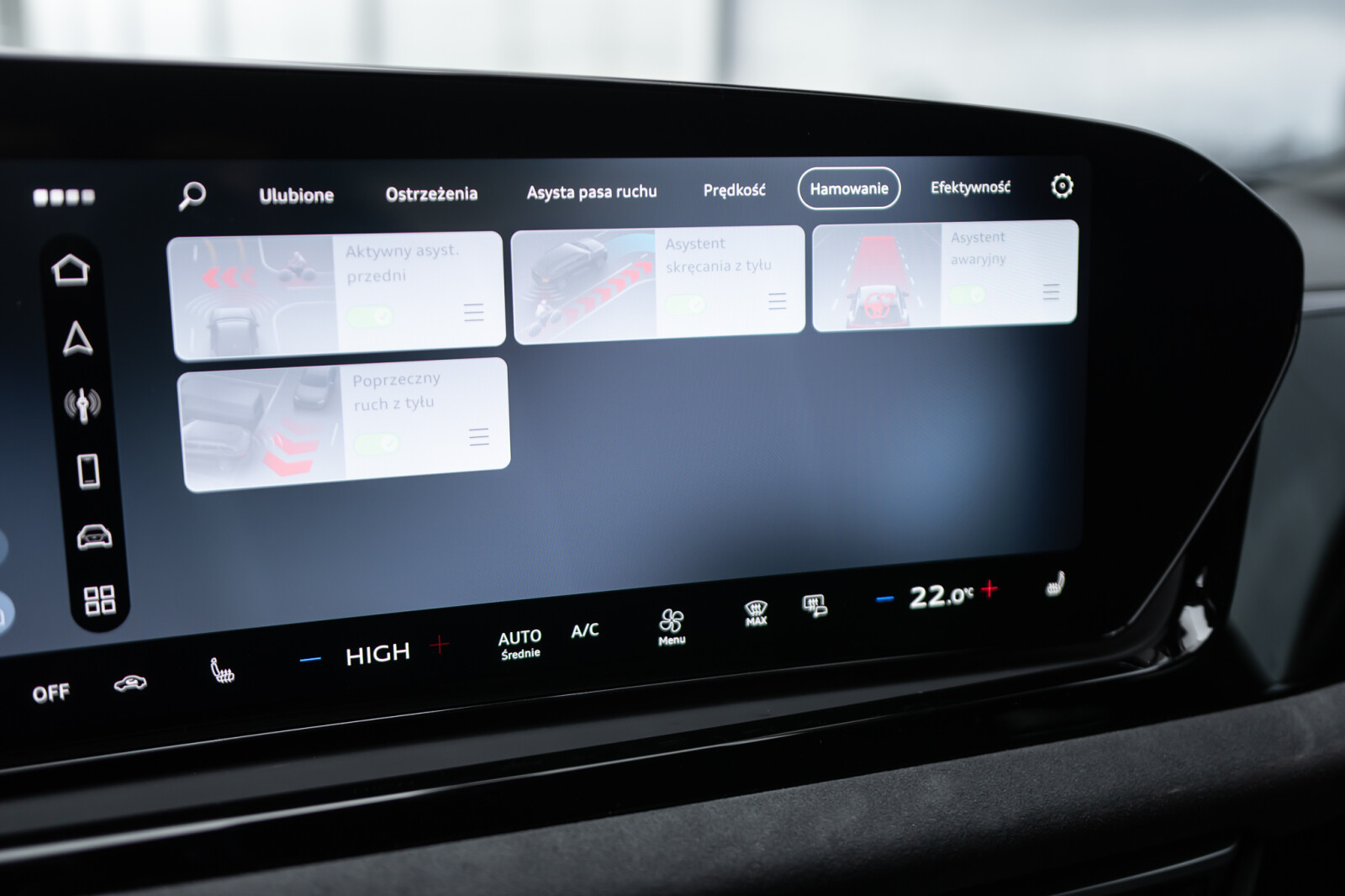 • system ostrzegający przy zmianie pasa ruchu i wysiadaniu, asystent ruchu poprzecznego z tyłu i tylny asystent skrętu