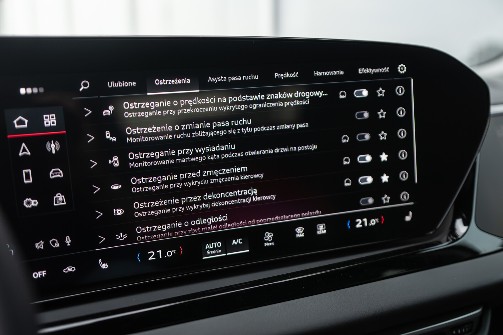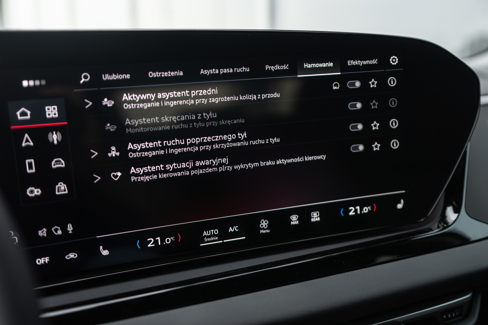– System ostrzegający przy zmianie pasa ruchu i wysiadaniu, asystent ruchu poprzecznego z tyłu i tylny asystent skrętu