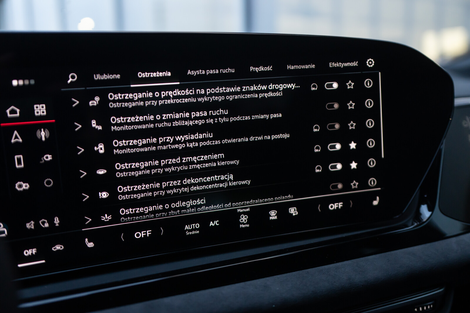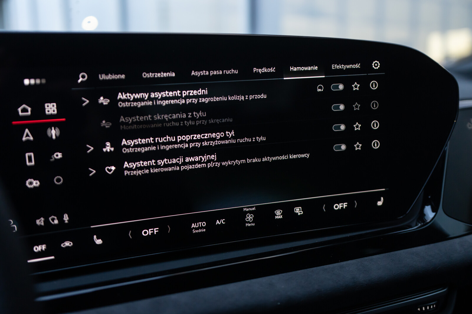 • funkcja ostrzegania przy zmianie pasa ruchu i przy wysiadaniu, tylny asystent ruchu poprzecznego i tylny asystent skrętu