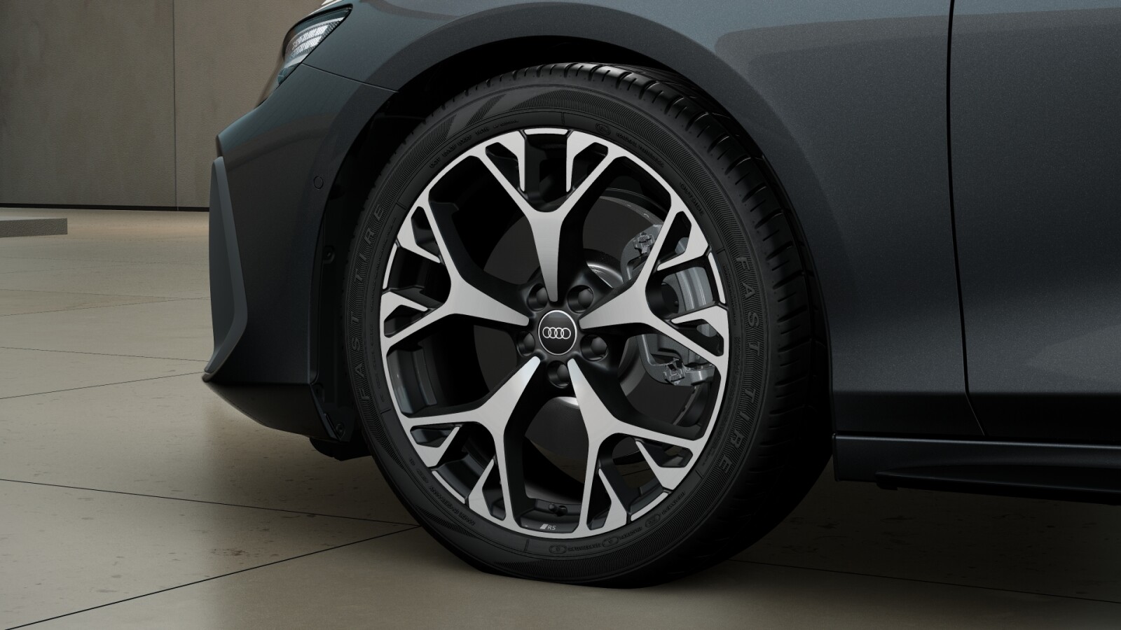 – Obręcze kół ze stopu metali lekkich Audi Sport 8,5Jx20″, 5 – ramienne Peak, czarne metalik, polerowane, z oponami 255/40 R 20. 3-letnie ubezpieczenie opon w cenie.