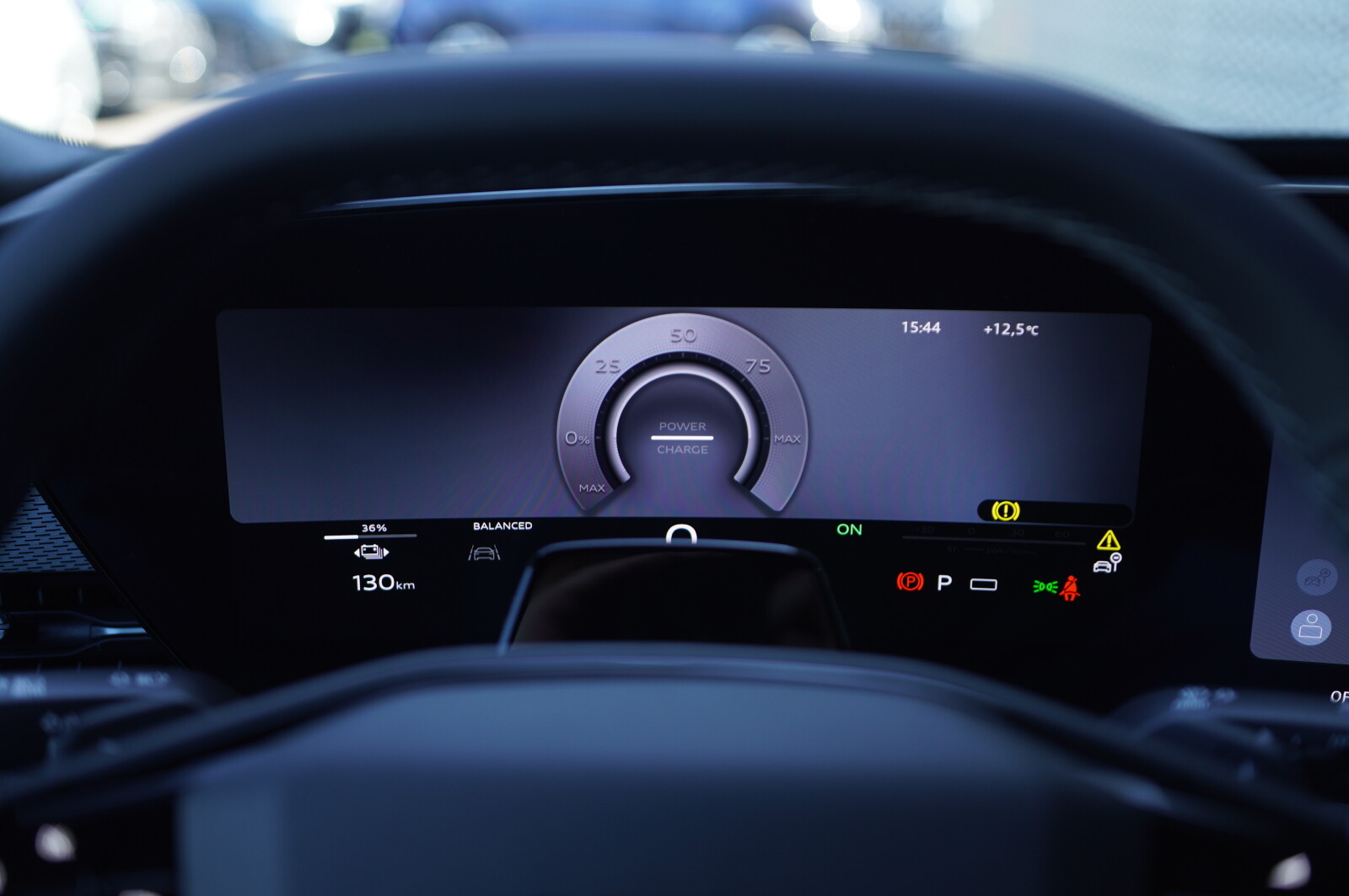 – Kierownica sportowa, 3-ramienna, spłaszczona u dołu i na górze, wielofunkcyjna, z przełącznikami zmiany stopnia rekuperacji, obszyta skórą
