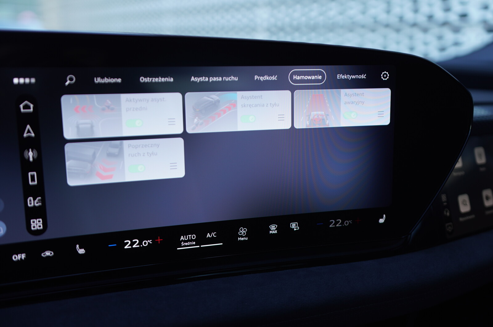 • boczne poduszki powietrzne z przodu i z tyłu z kurtynami chroniącymi głowy oraz środkową poduszką powietrzną z przodu