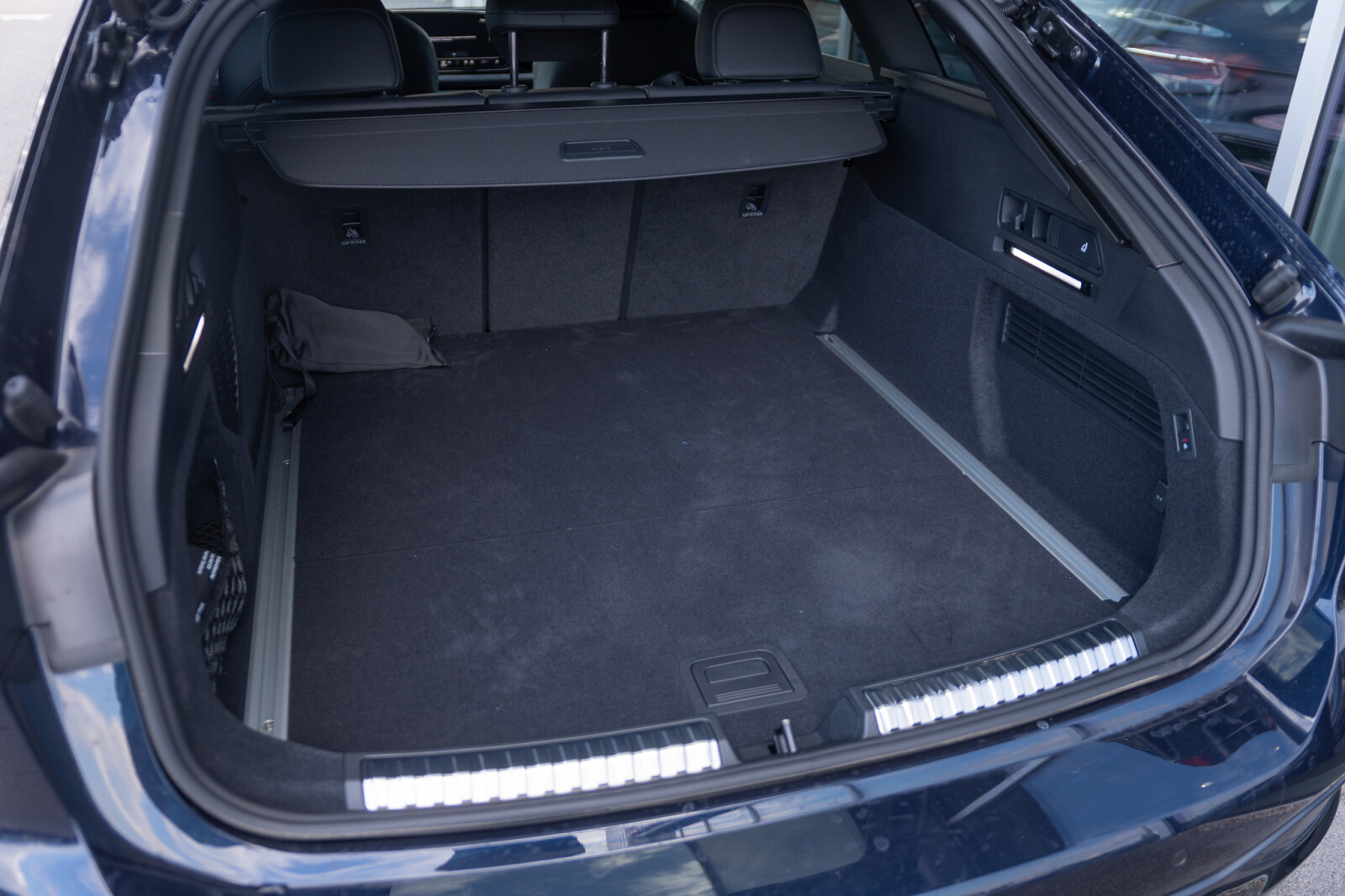 • listwy progowe w przednich drzwiach z aluminiowymi wstawkami, podświetlane, z emblematem S