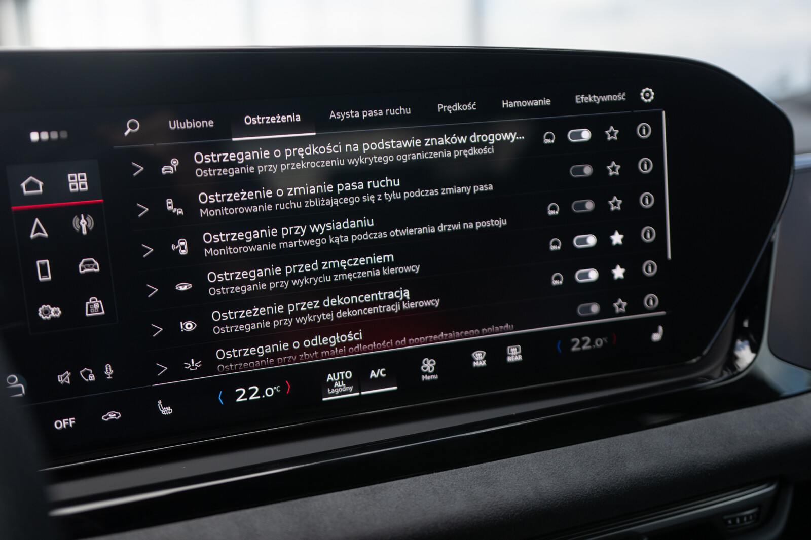 funkcja ostrzegania przy zmianie pasa ruchu i przy wysiadaniu, tylny asystent ruchu poprzecznego i tylny asystent skrętu