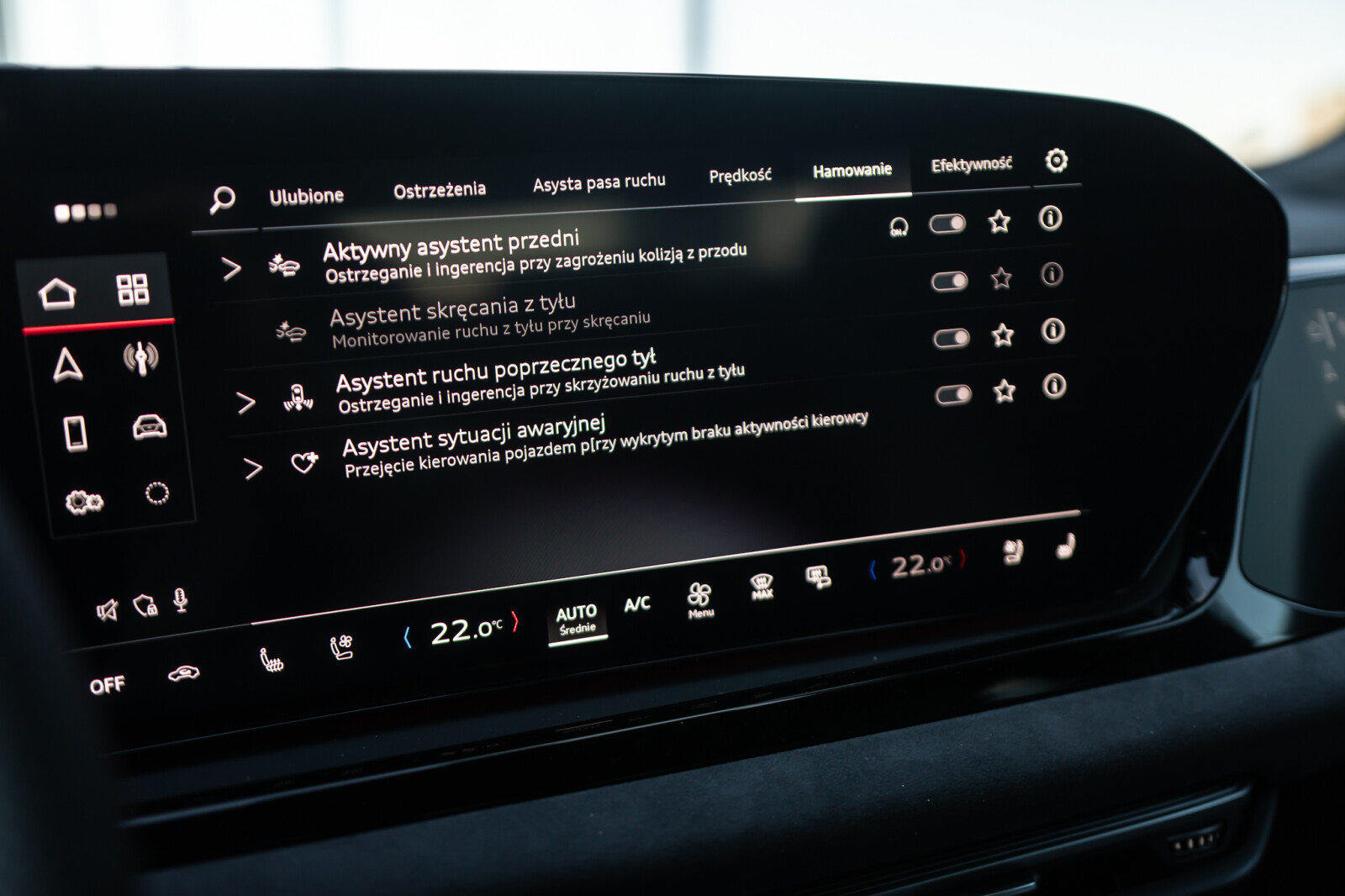 • funkcja ostrzegania przy zmianie pasa ruchu i wysiadaniu, tylny asystent ruchu poprzecznego i tylny asystent skrętu
