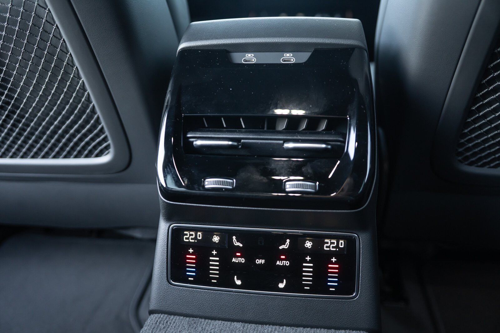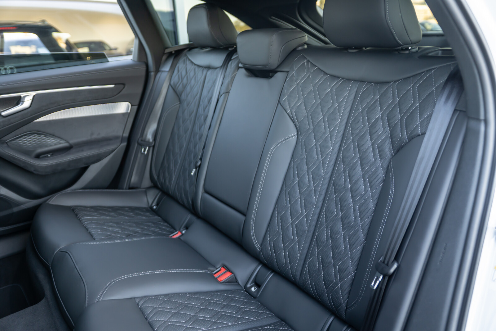 • wentylowane części środkowe przednich siedzeń i niewentylowane części środkowe skrajnych siedzeń z tyłu obszyte perforowaną czarną skórą pikowaną w romby