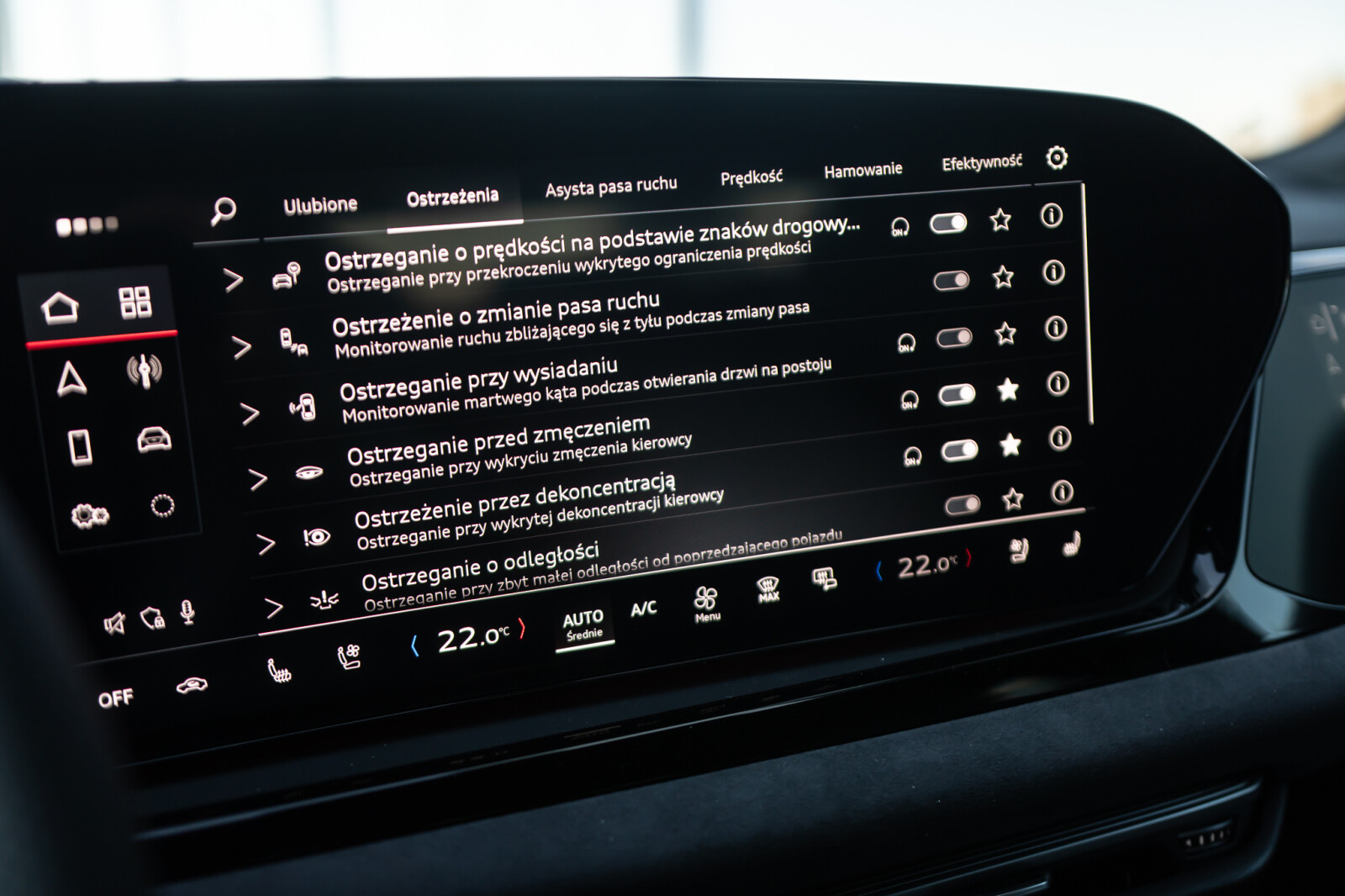 • funkcja ostrzegająca o opuszczaniu pasa ruchu z Emergency Assist