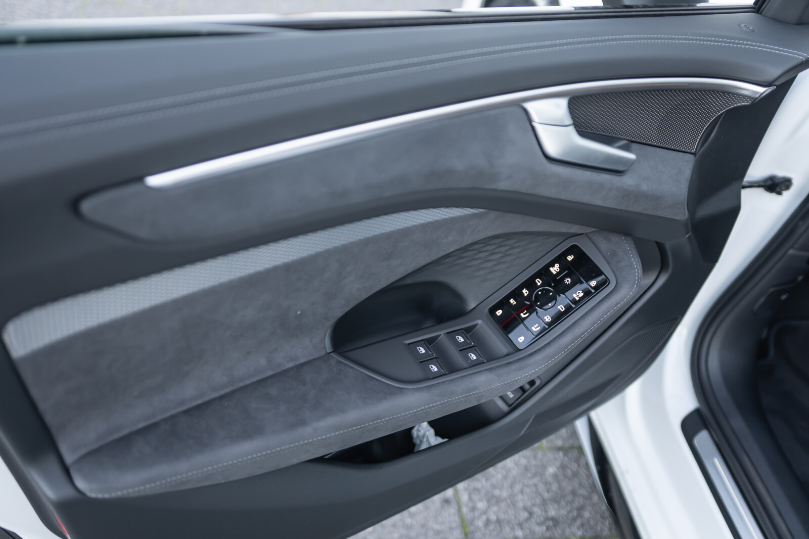 • ciemne listwy wokół okien i elementy montowane do nadwozia, pierścienie Audi z przodu i z tyłu w kolorze antracytowoszarym