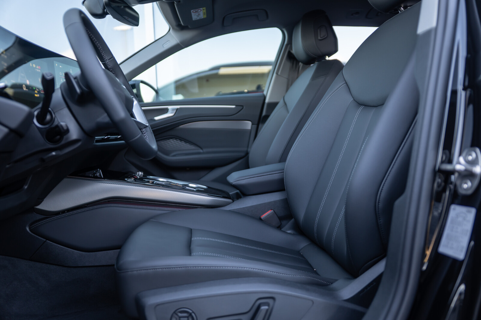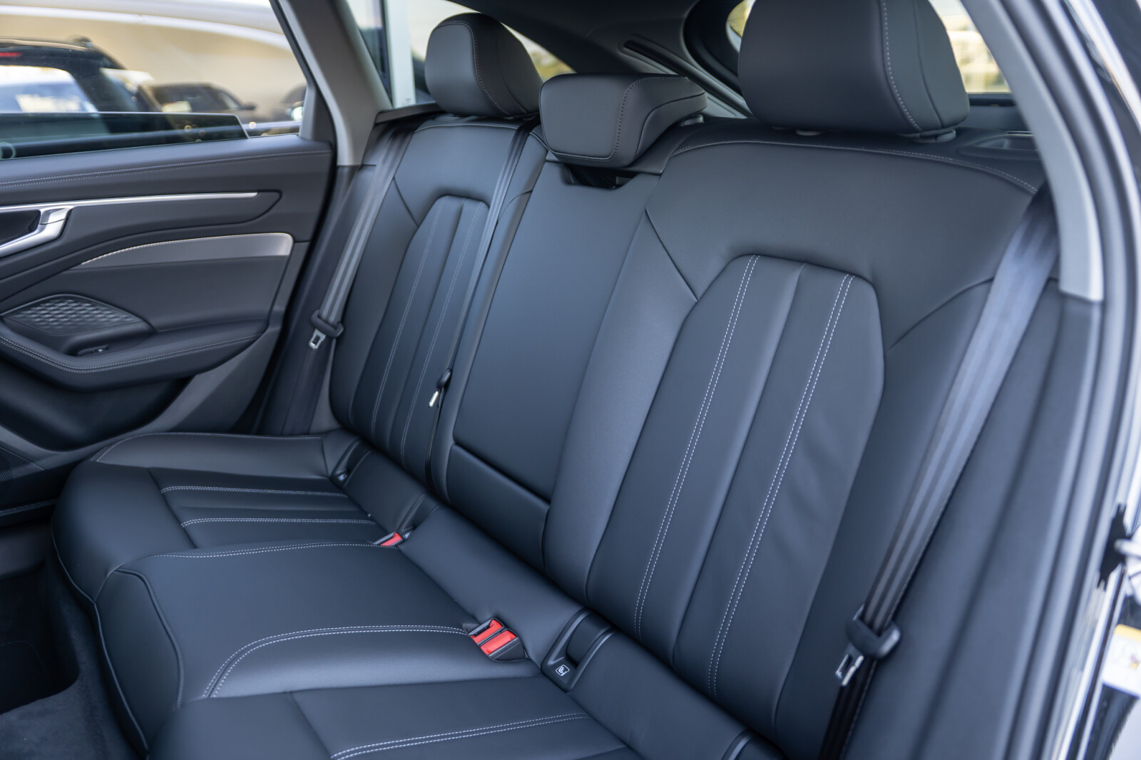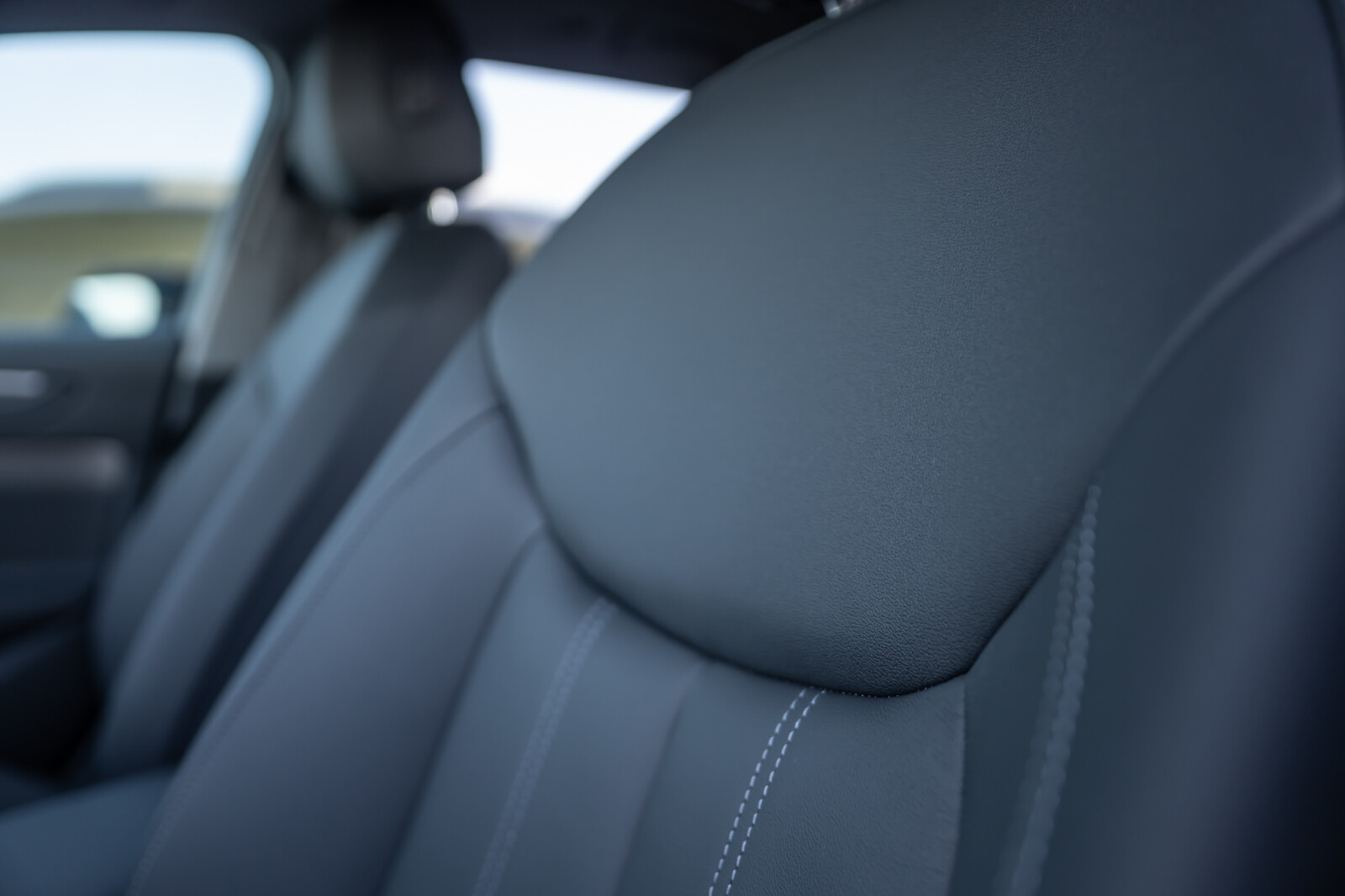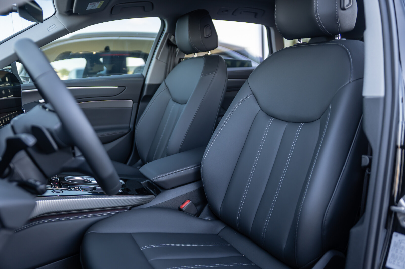 • środkowe części przednich siedzeń i skrajnych siedzeń tylnych obszyte czarną skórą, boki siedzeń i zagłówki obszyte czarną skórą ekologiczną; kontrastowy szew (tapicerka tylnych siedzeń dopasowana wizualnie do siedzeń przednich)