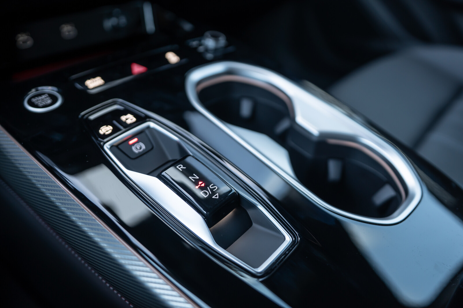 • górne i dolne elementy wnętrza z kontrastowym szwem: górna część tablicy rozdzielczej i pas pod szybami w drzwiach w kolorze czarnym z kontrastowym szwem; segmenty na konsoli środkowej na wysokości kolan pokryte czarną skórą ekologiczną z kontrastowym szwem