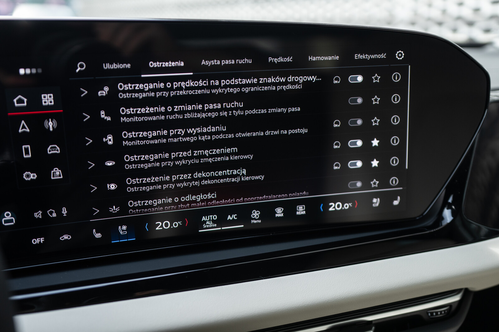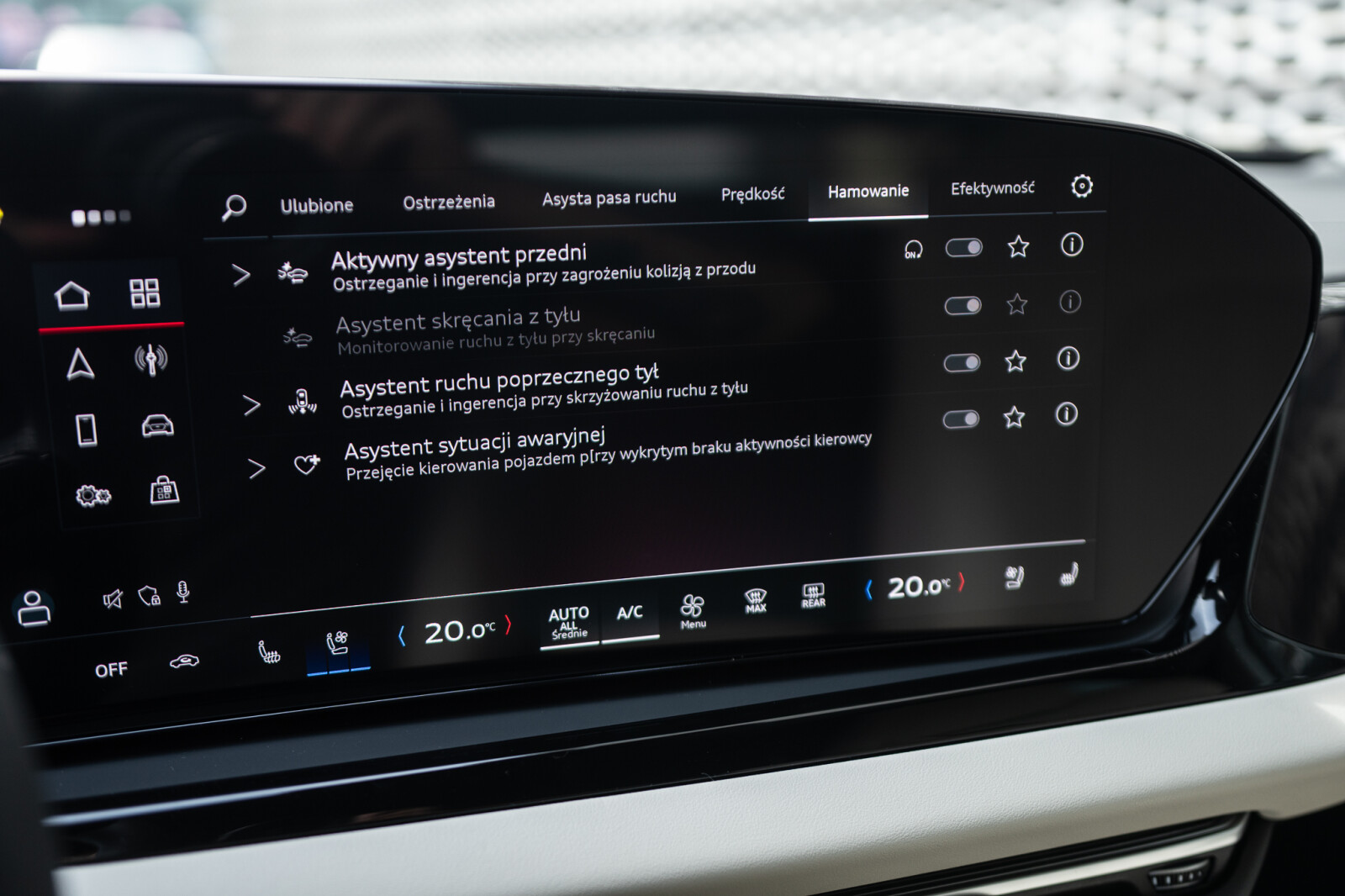 • funkcja ostrzegania przy zmianie pasa ruchu i wysiadaniu, tylny asystent ruchu poprzecznego i tylny asystent skrętu