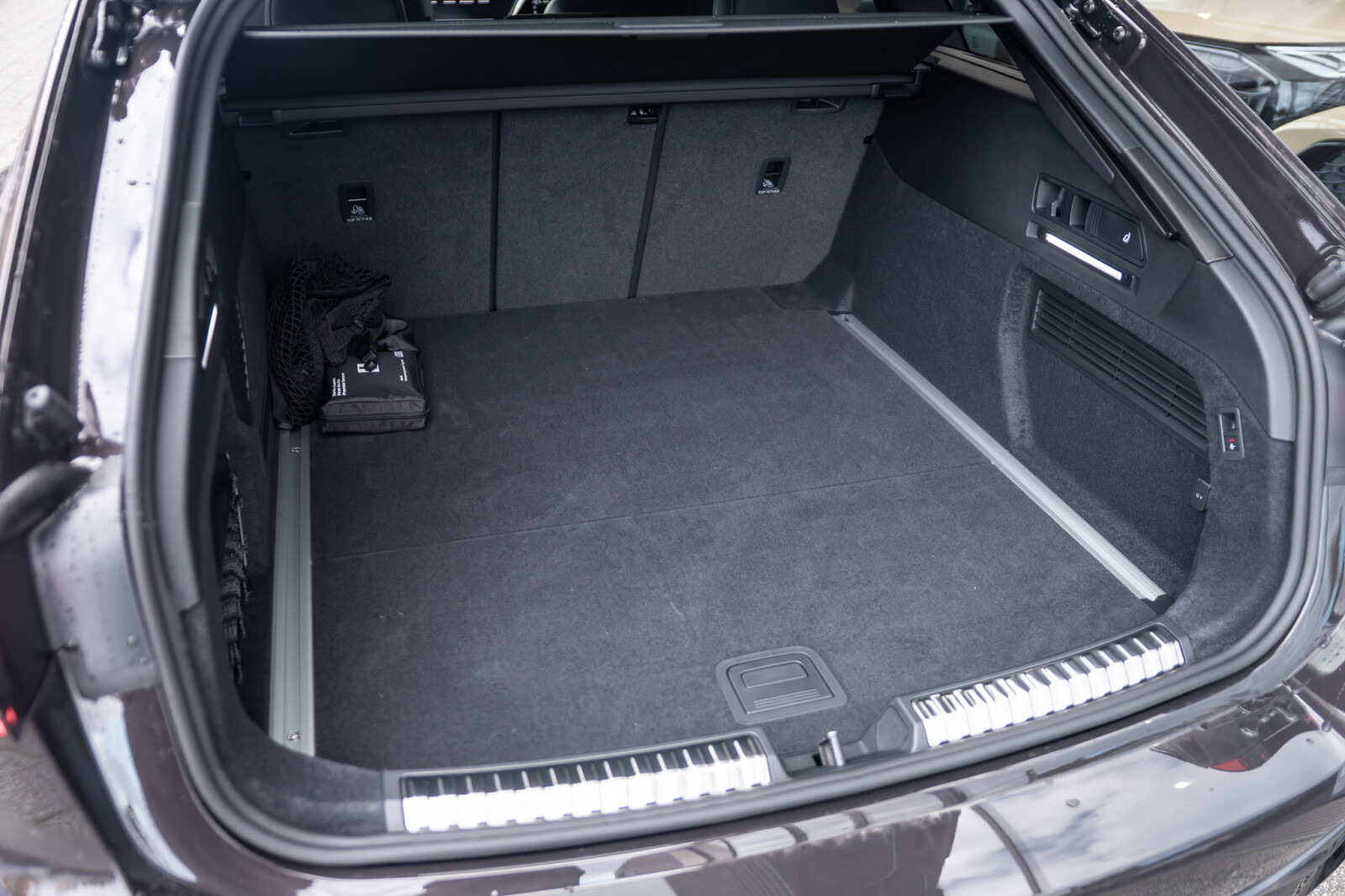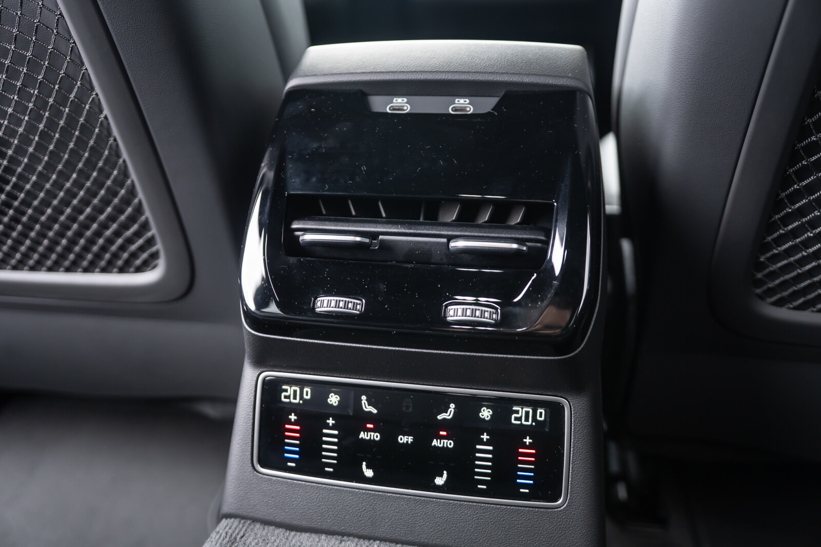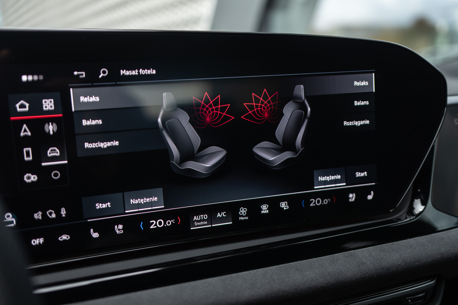 przednie siedzenia sportowe plus z wentylacją, wizualnie zintegrowanymi zagłówkami i wyprofilowanymi bokami, poprawiającymi stabilność na zakrętach, dekoracyjny segment z podświetlonym emblematem S w górnej części oparcia, manualnie wysuwane podparcie pod uda