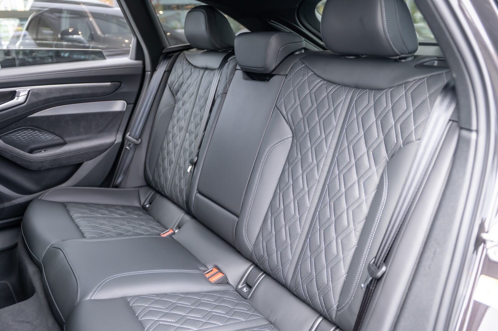 wentylowane części środkowe przednich siedzeń i niewentylowane części środkowe skrajnych siedzeń z tyłu obszyte perforowaną czarną skórą pikowaną w romby, boki siedzeń i zagłówki obszyte czarną skórą Feinnappa, kontrastowy szew, (tapicerka tylnych siedzeń dopasowana wizualnie do siedzeń przednich)