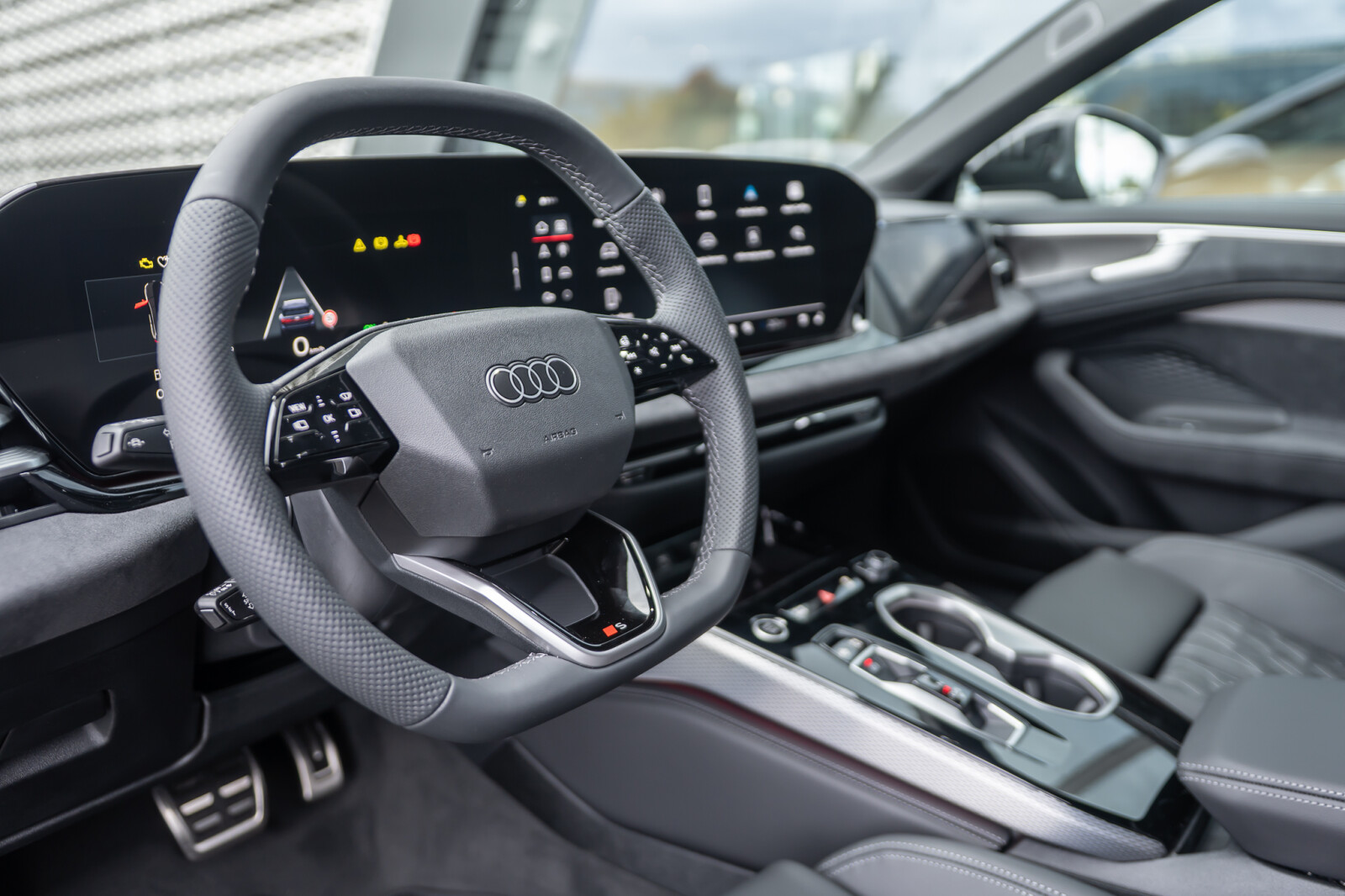 • ciemne listwy wokół okien i elementy montowane do nadwozia, pierścienie Audi z przodu i z tyłu w kolorze antracytowoszarym