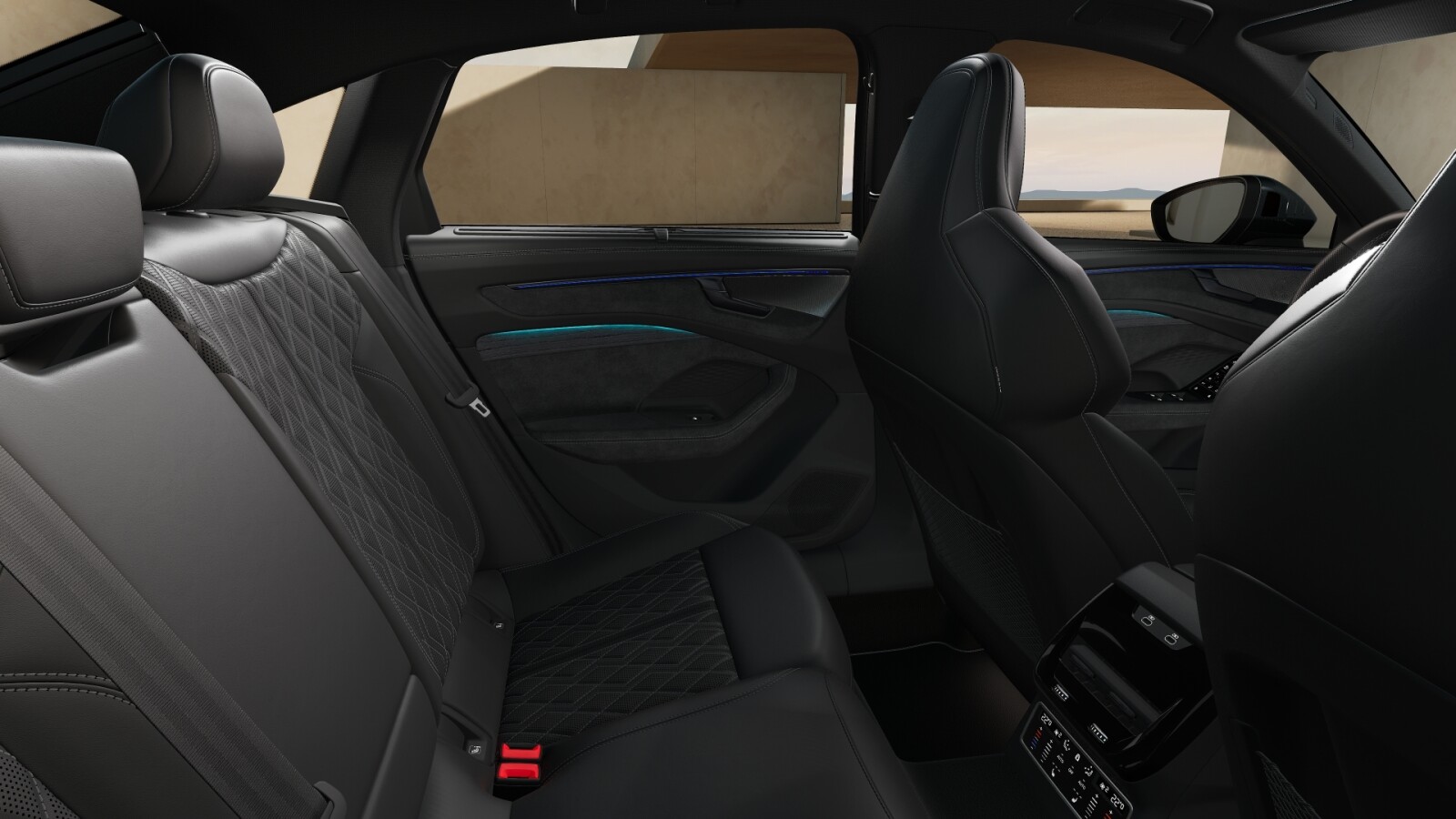 • wentylowane części środkowe przednich siedzeń i niewentylowane części środkowe skrajnych siedzeń z tyłu obszyte perforowaną czarną skórą pikowaną w romby, boki siedzeń i zagłówki obszyte czarną skórą Feinnappa, kontrastowy szew, (tapicerka tylnych siedzeń dopasowana wizualnie do siedzeń przednich)