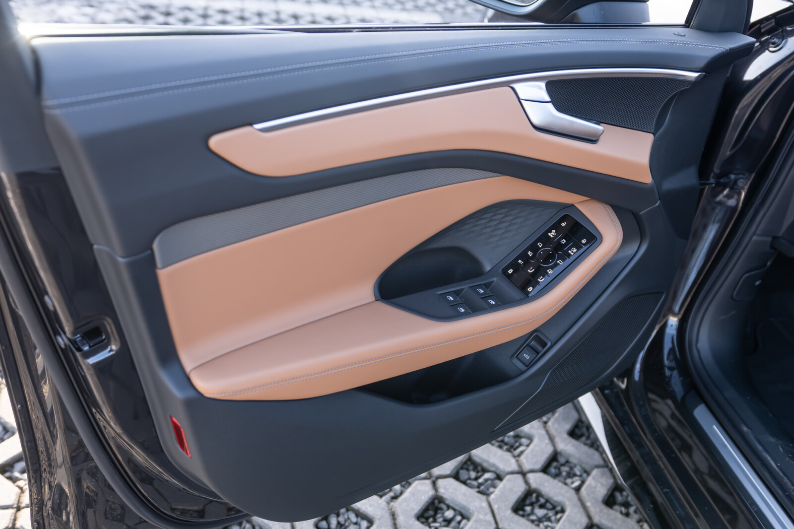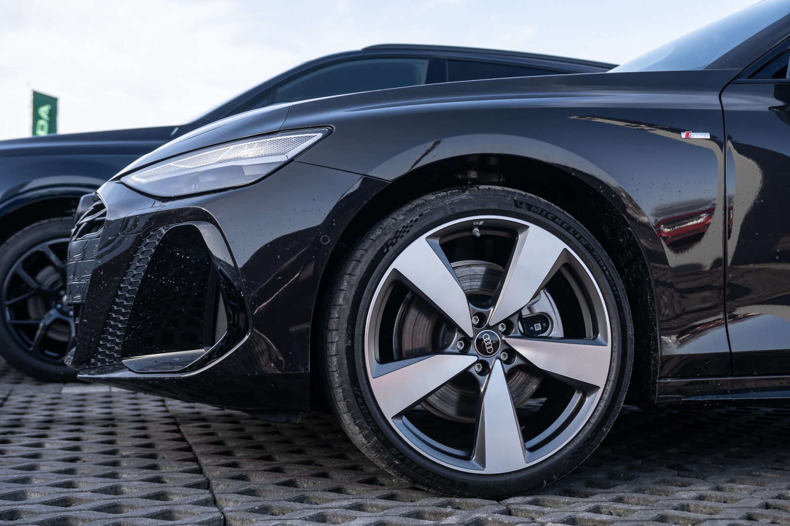 • ciemne listwy wokół okien i elementy montowane do nadwozia, pierścienie Audi z przodu i z tyłu w kolorze antracytowoszarym