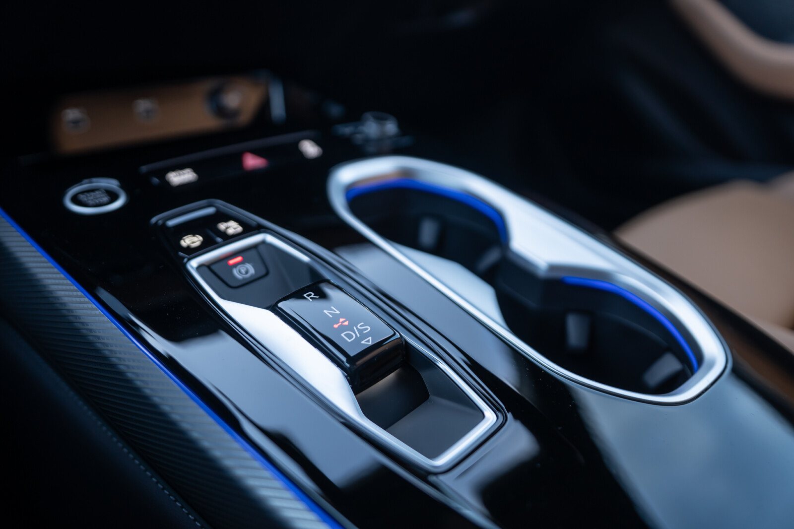 • górne i dolne elementy wnętrza z kontrastowym szwem: górna część tablicy rozdzielczej i pas pod szybami w drzwiach w kolorze czarnym z kontrastowym szwem; segmenty na konsoli środkowej na wysokości kolan pokryte czarną skórą ekologiczną z kontrastowym szwem