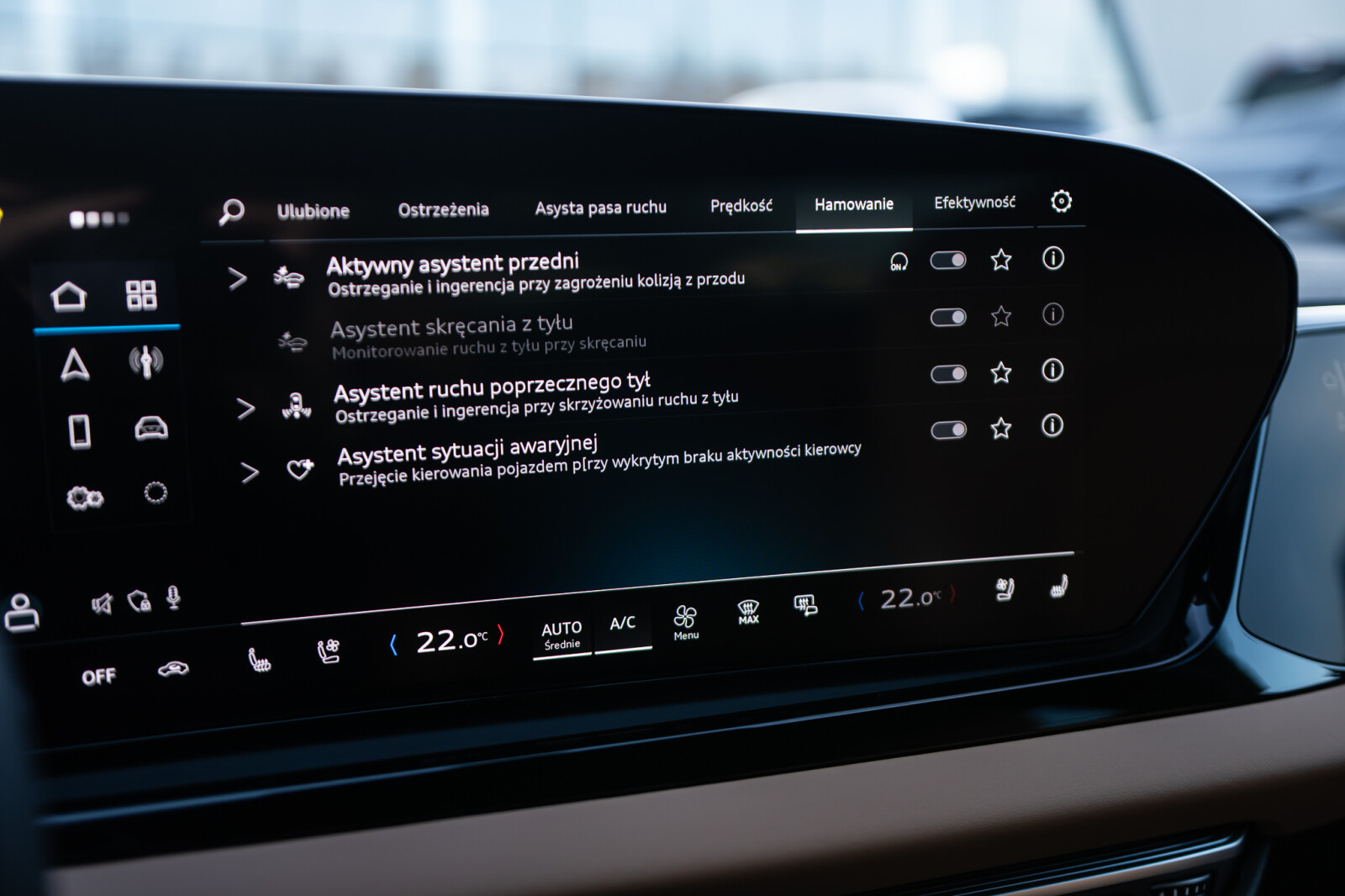 • funkcja ostrzegania przy zmianie pasa ruchu i wysiadaniu, tylny asystent ruchu poprzecznego i tylny asystent skrętu