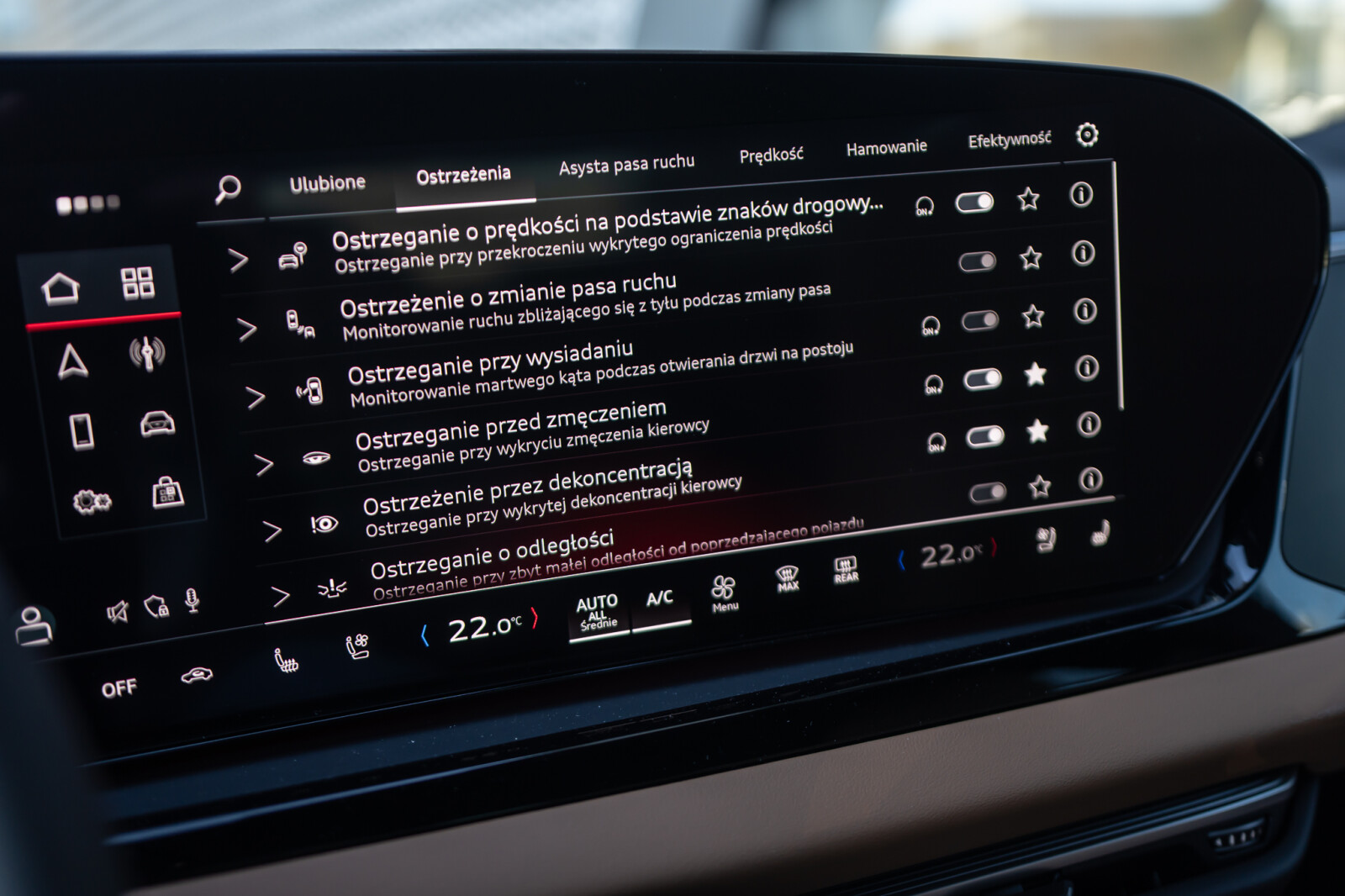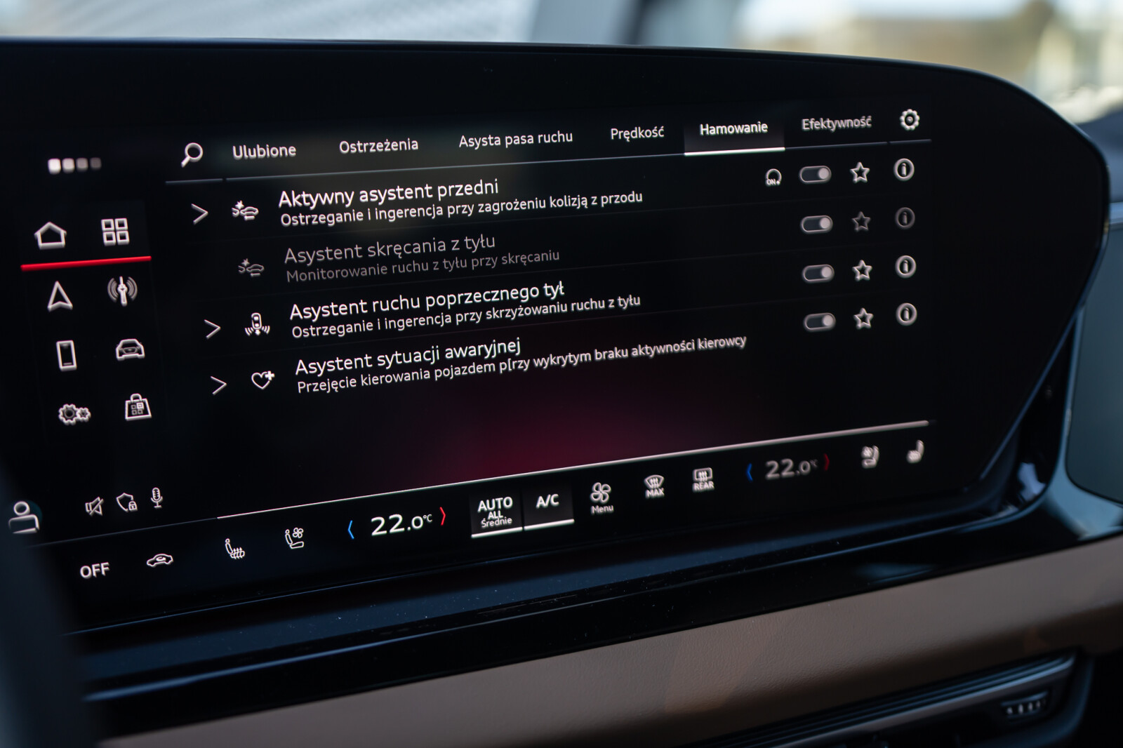 • funkcja ostrzegania przy zmianie pasa ruchu i wysiadaniu, tylny asystent ruchu poprzecznego i tylny asystent skrętu