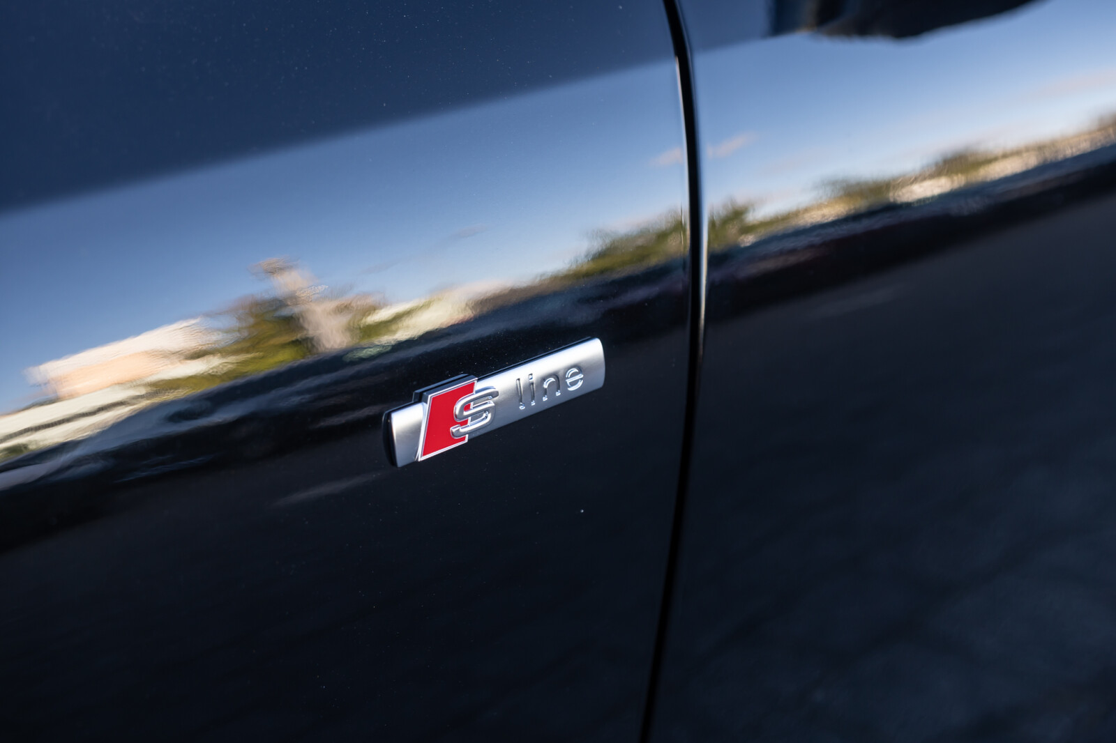 • ciemne listwy wokół okien i elementy montowane do nadwozia, pierścienie Audi z przodu i z tyłu w kolorze antracytowoszarym