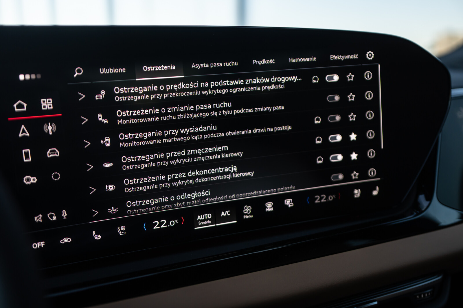 • funkcja ostrzegająca o opuszczaniu pasa ruchu z Emergency Assist