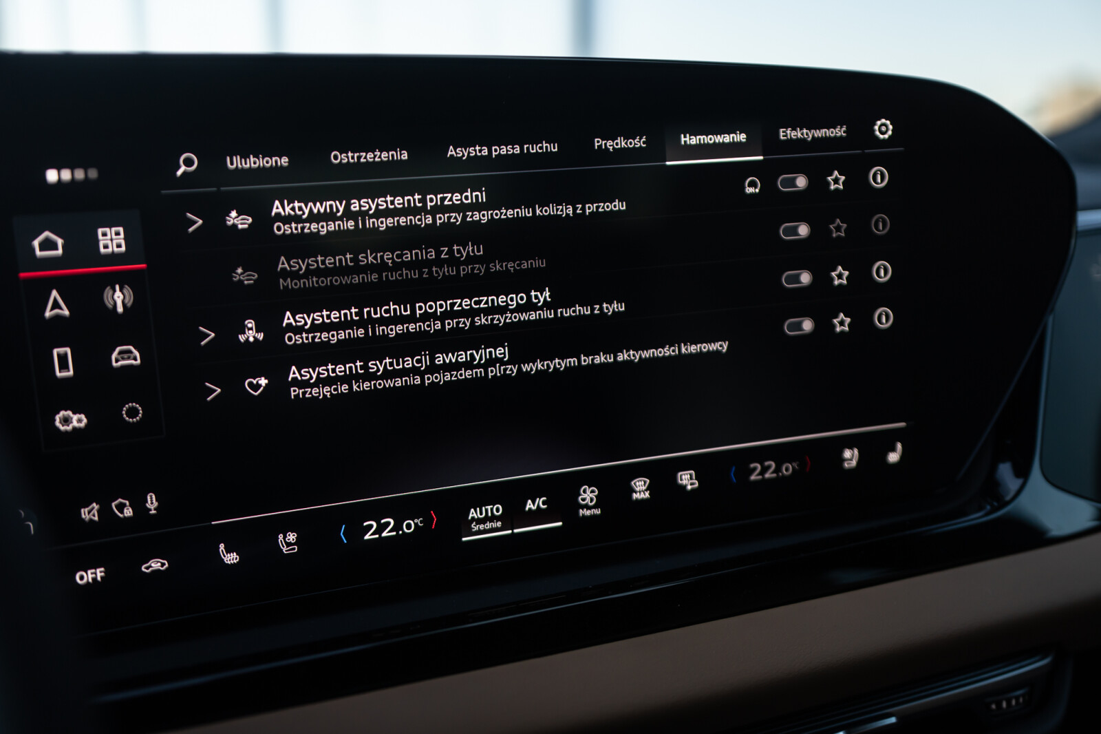 • funkcja ostrzegania przy zmianie pasa ruchu i wysiadaniu, tylny asystent ruchu poprzecznego i tylny asystent skrętu