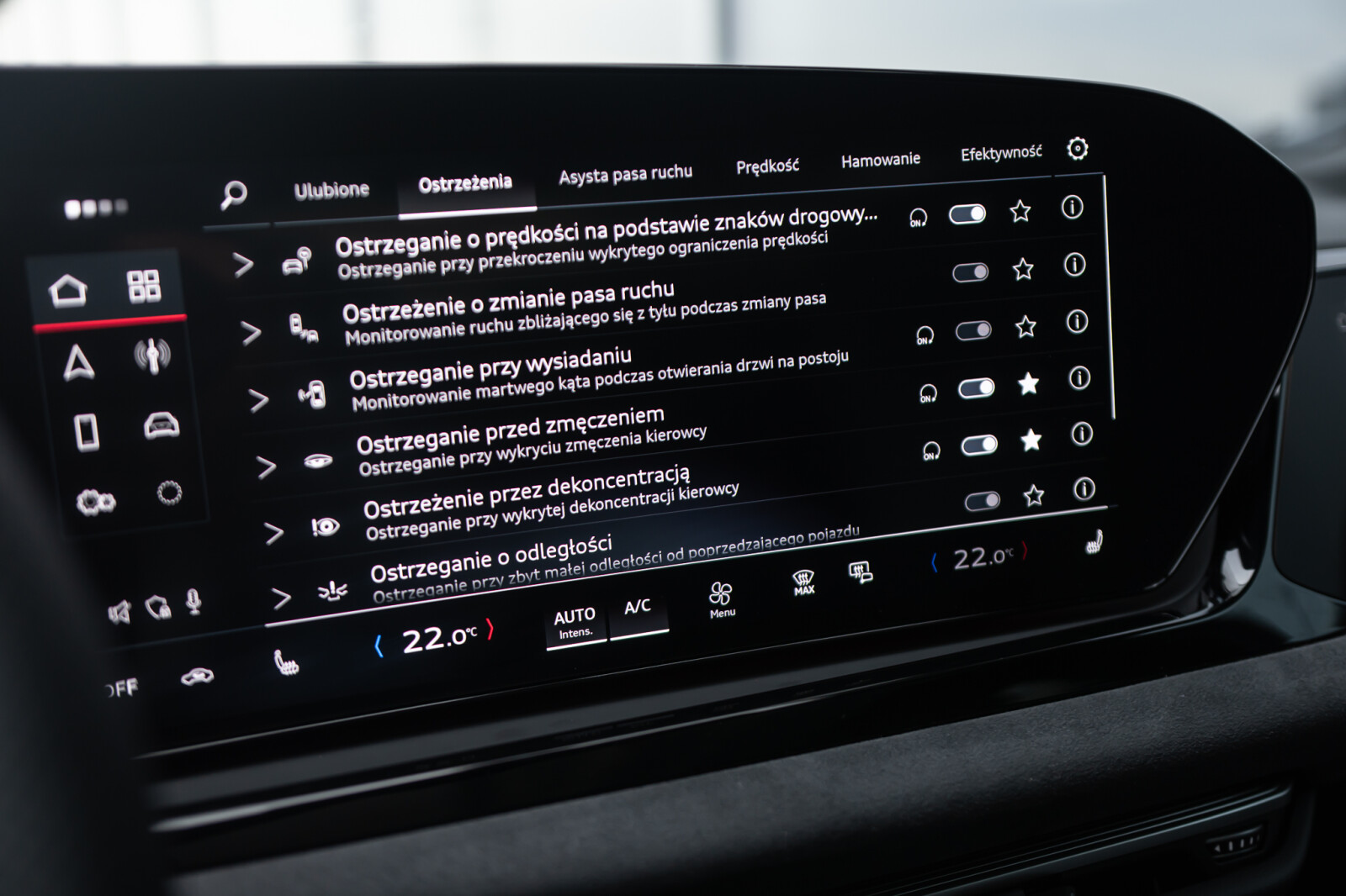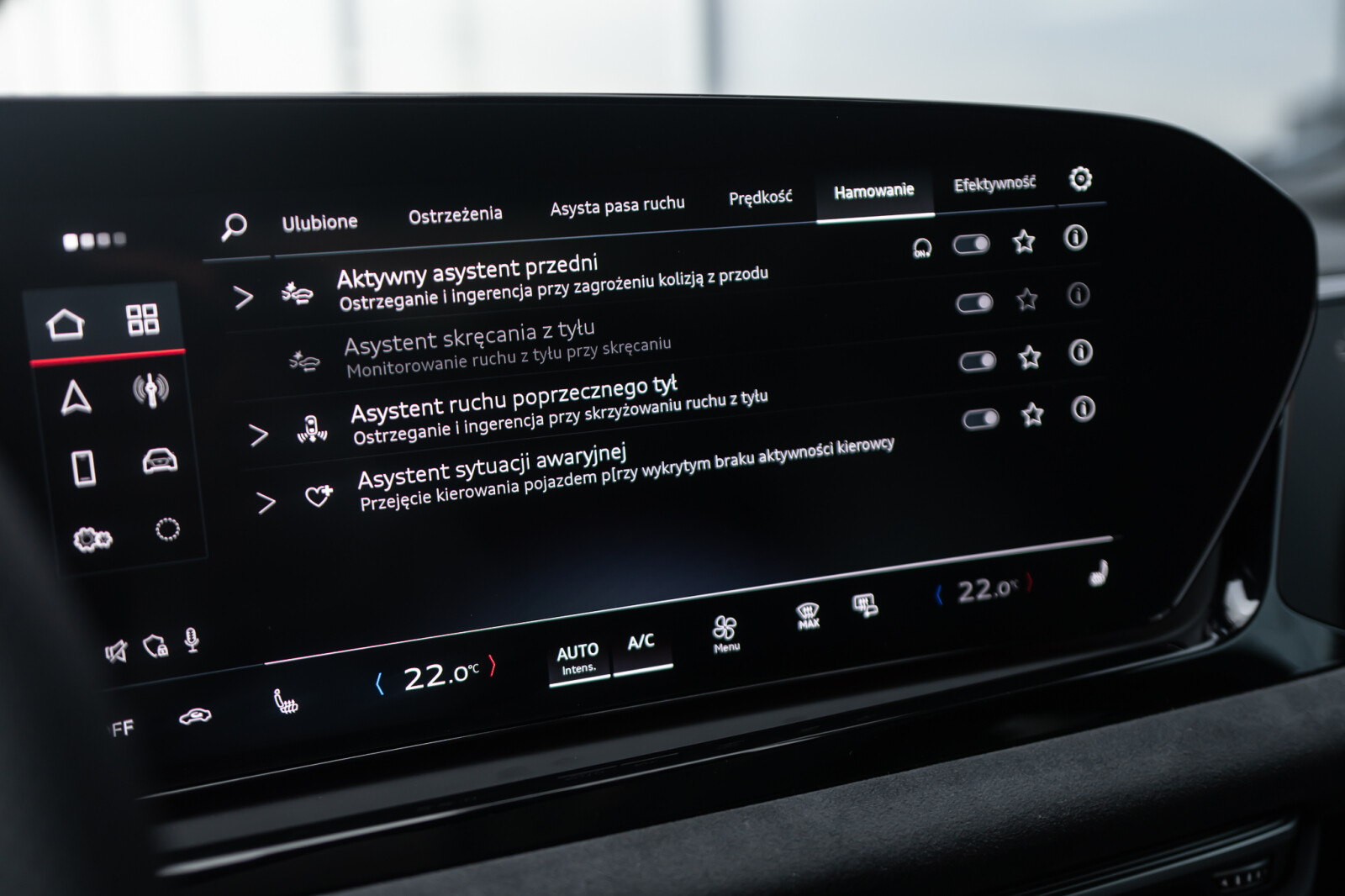 • funkcja ostrzegania przy zmianie pasa ruchu i przy wysiadaniu, tylny asystent ruchu poprzecznego i tylny asystent skrętu
