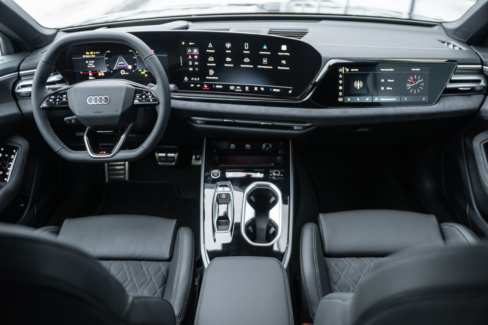 – Obręcze kół ze stopu metali lekkich Audi Sport 8,5Jx20″, 5 – ramienne, z podwójnymi ramionami w kształcie litery V, czarne metalik, polerowane, z oponami 255/40 R 20. 3-letnie ubezpieczenie opon w cenie.