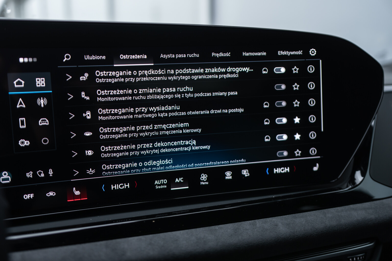 • funkcja ostrzegania przy opuszczeniu pasa ruchu z Emergency Assist