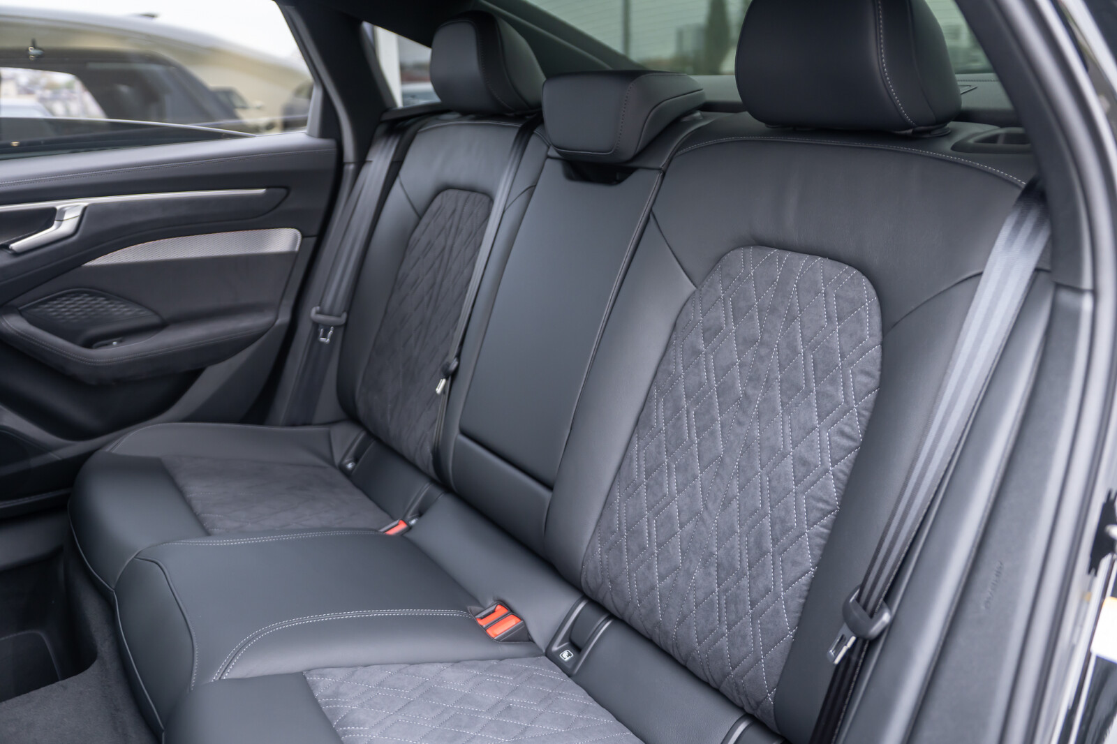 • środkowe części siedzeń obszyte czarną mikrofibrą Dinamica z pikowaniem w romby, boki siedzeń obszyte czarną skórą, zagłówki pokryte czarną skórą ekologiczną
