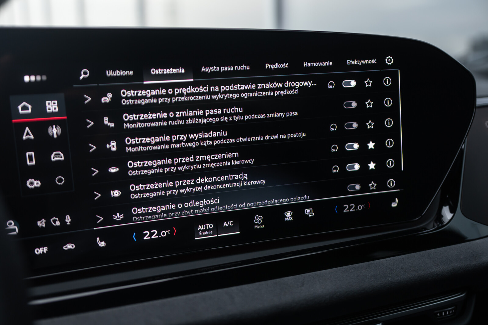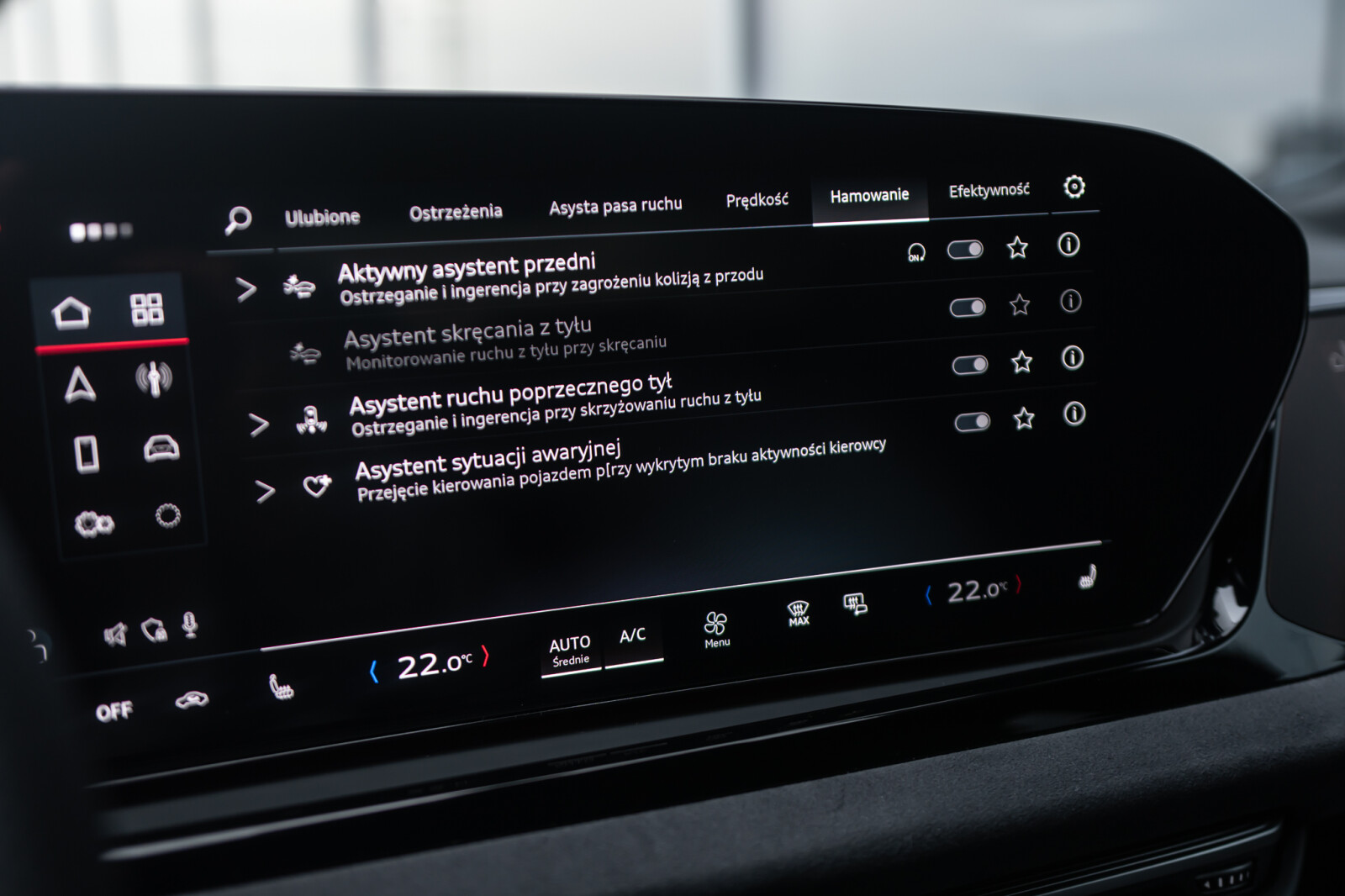 • funkcja ostrzegania przy zmianie pasa ruchu i przy wysiadaniu, tylny asystent ruchu poprzecznego i tylny asystent skrętu