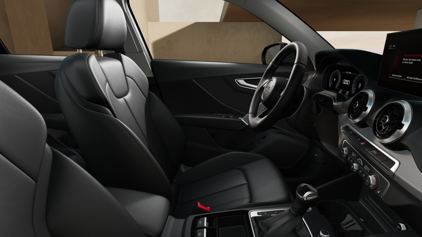 – Wnętrze z siedzeniami sportowymi obszytymi kombinacją skóra/skóra ekologiczna w kolorze czarnym