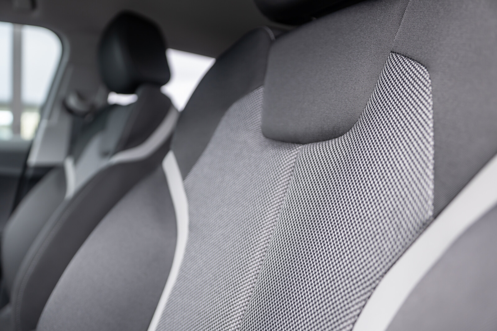 – Wnętrze z siedzeniami sportowymi obszytymi tkaniną w kolorze czarnym