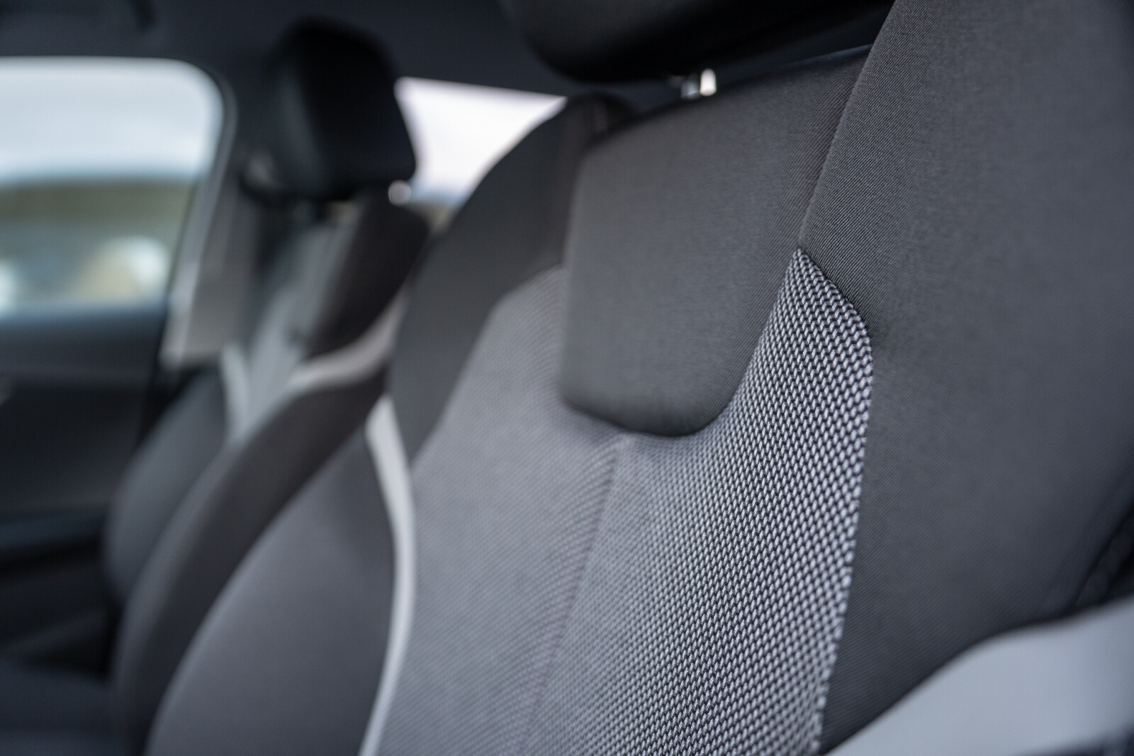 – Wnętrze z siedzeniami sportowymi obszytymi tkaniną w kolorze czarnym