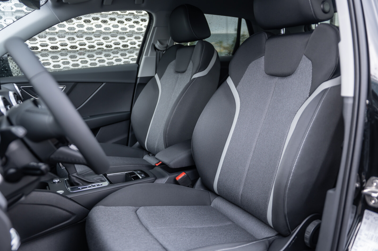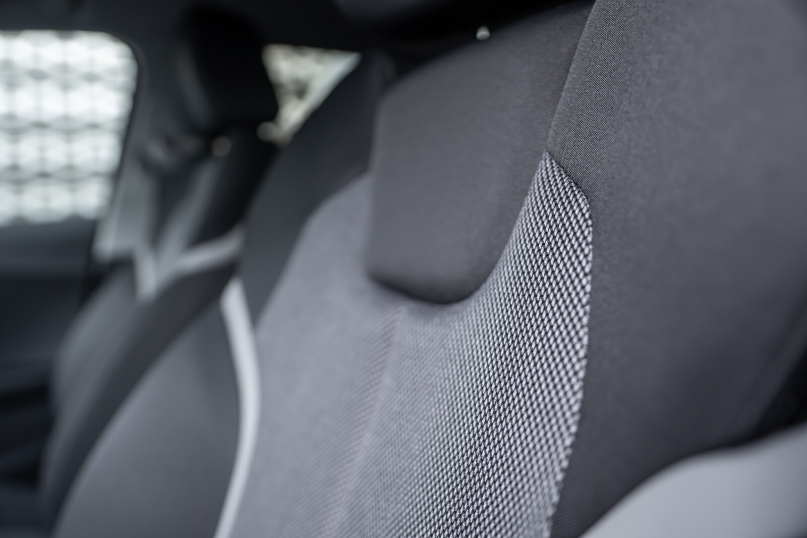 – Wnętrze z siedzeniami sportowymi obszytymi tkaniną w kolorze czarnym