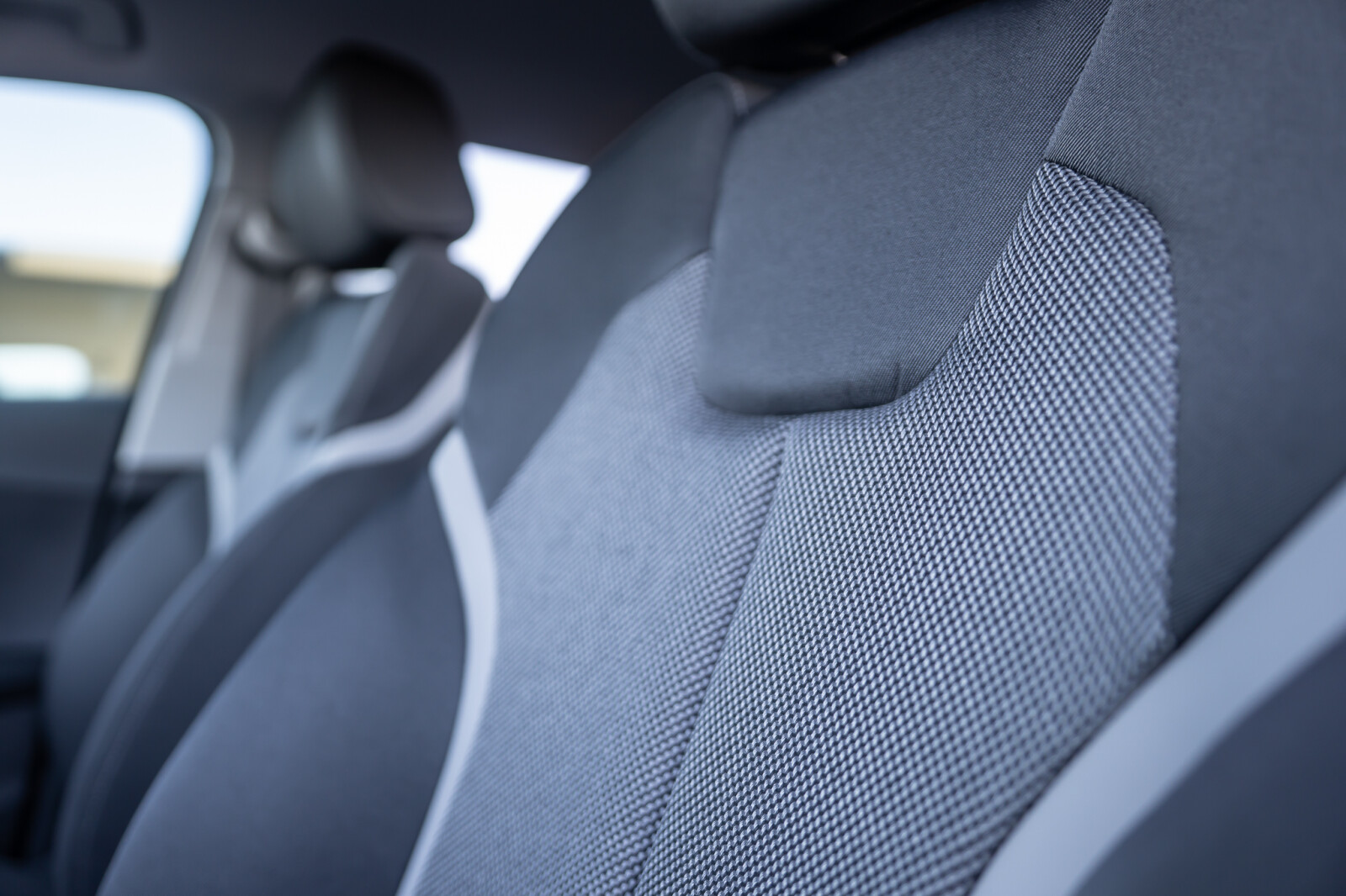 – Wnętrze z siedzeniami sportowymi obszytymi tkaniną w kolorze czarnym