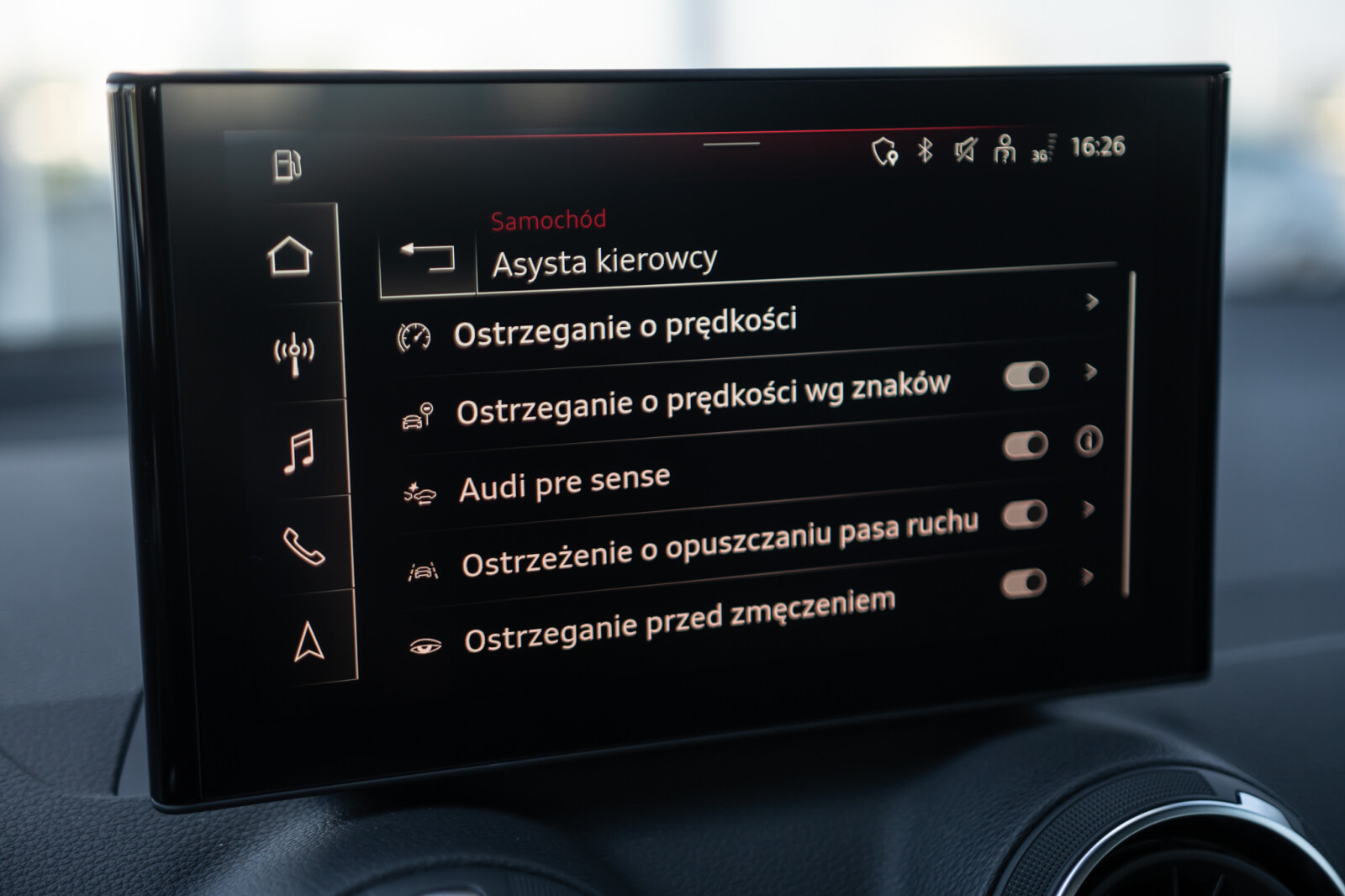 – Audi sound system – dziesięć głośników wraz z głośnikiem centralnym i subwooferem, 6-kanałowy wzmacniacz o mocy całkowitej 180 W