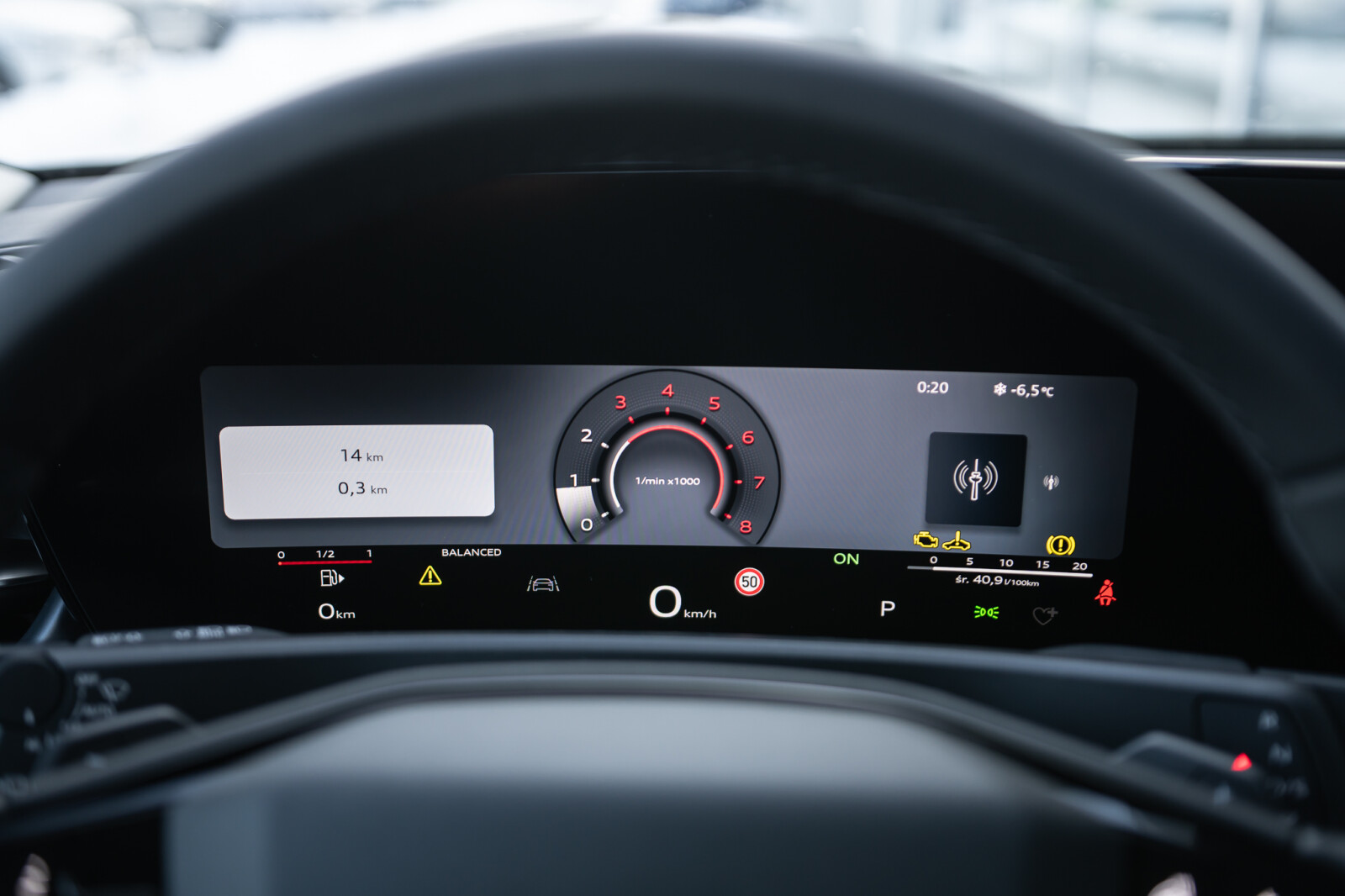 – Kierownica wielofunkcyjna z podwójnymi ramionami, przełącznikami zmiany przełożenia, obszyta skórą i ogrzewana
