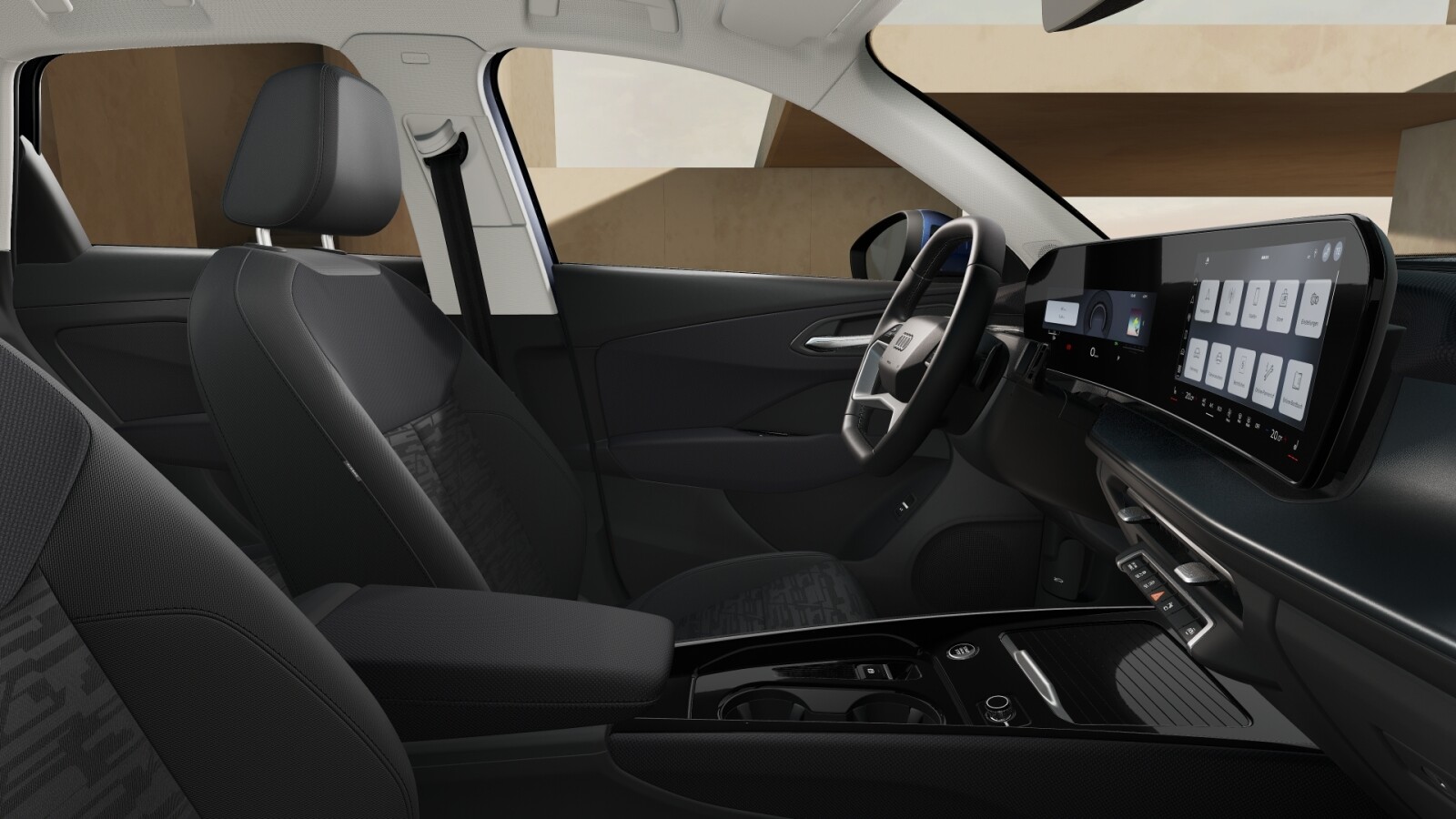 – Sportowa kierownica wielofunkcyjna z przełącznikami zmiany przełożenia, z podwójnymi ramionami, spłaszczona na górze i na dole, obszyta skórą i ogrzewana