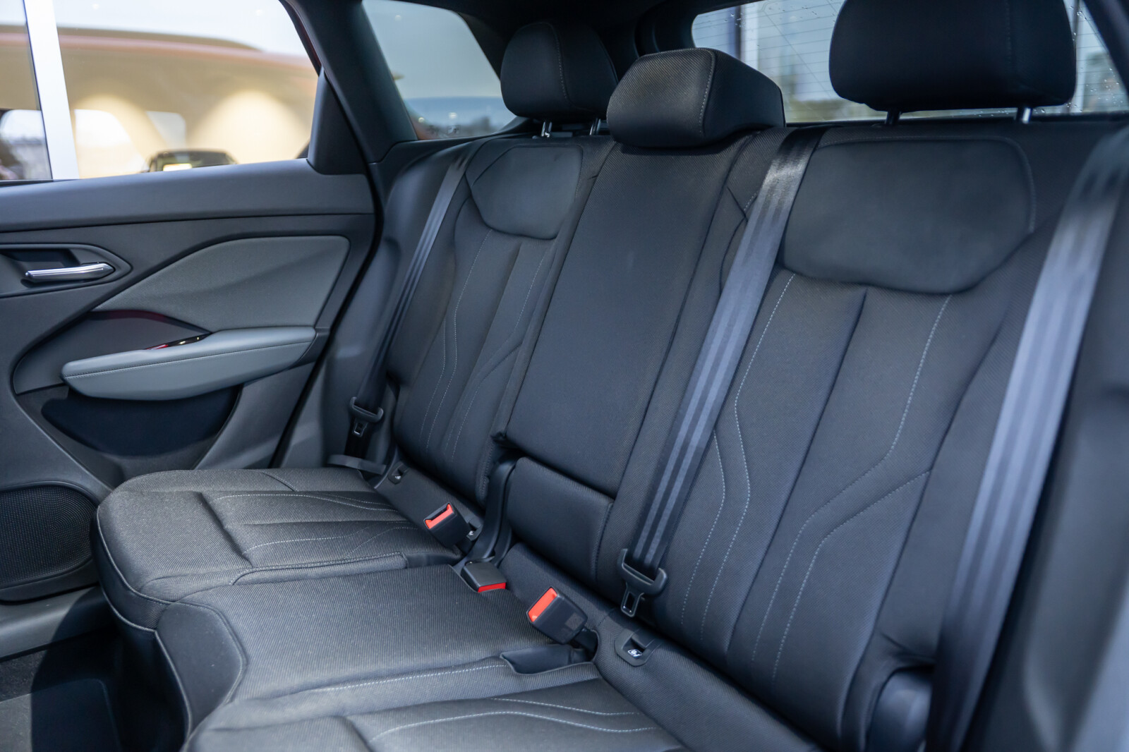 • środkowe części siedzeń, wewnętrzne części boków siedzeń i zagłówki obszyte tkaniną Impressum w kolorze czarnym, górna część oparć siedzeń obszyta czarną mikrofibrą; kontrastowy szew