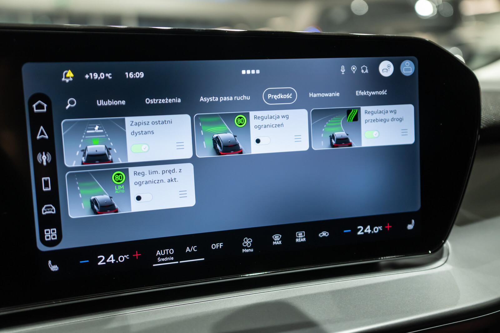 • adaptacyjny asystent prędkości z funkcją predykcyjnej regulacji prędkości