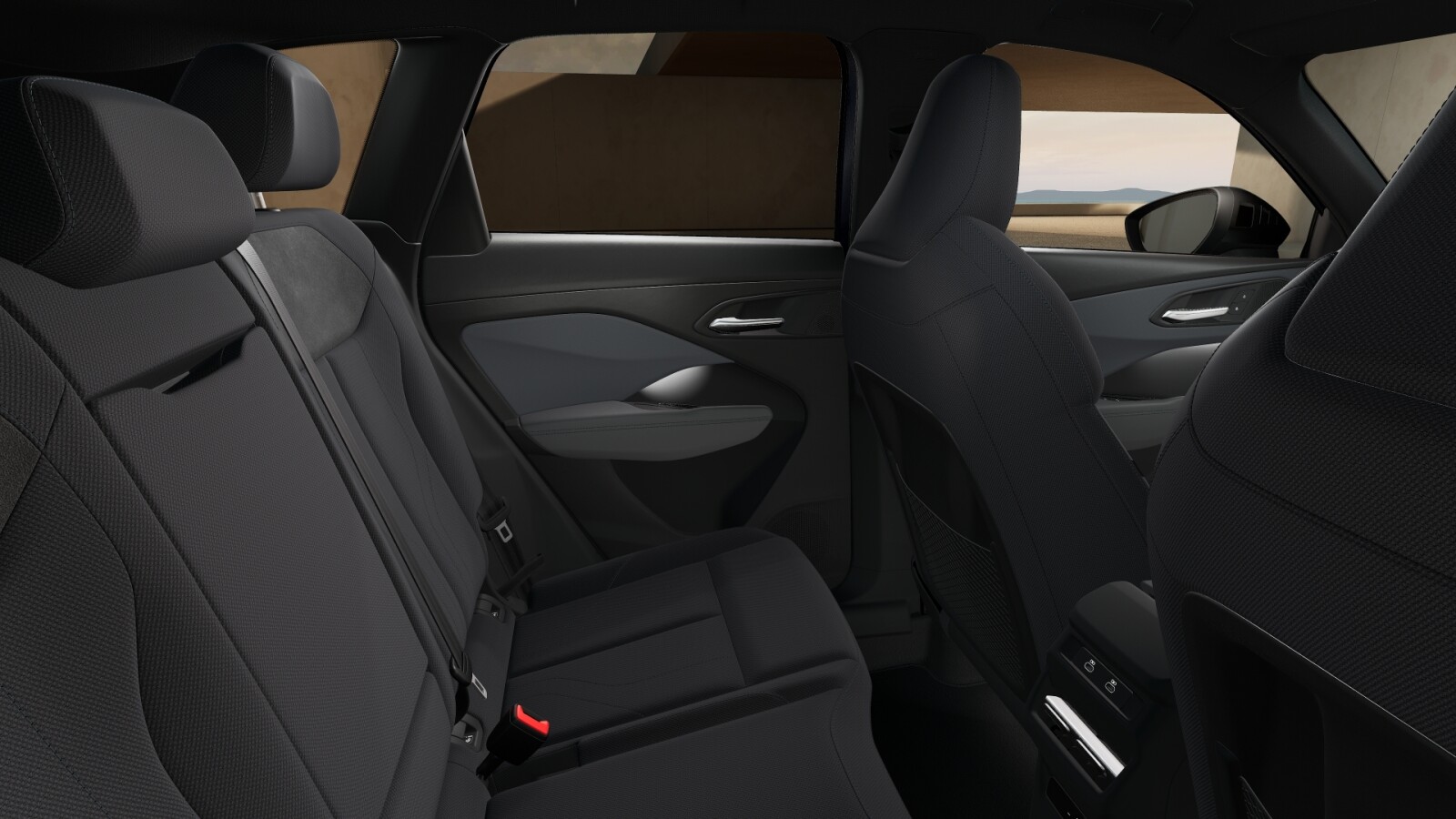 • środkowe części siedzeń, wewnętrzne części boków siedzeń i zagłówki obszyte tkaniną Impressum w kolorze czarnym, górna część oparć siedzeń obszyta czarną mikrofibrą; kontrastowy szew