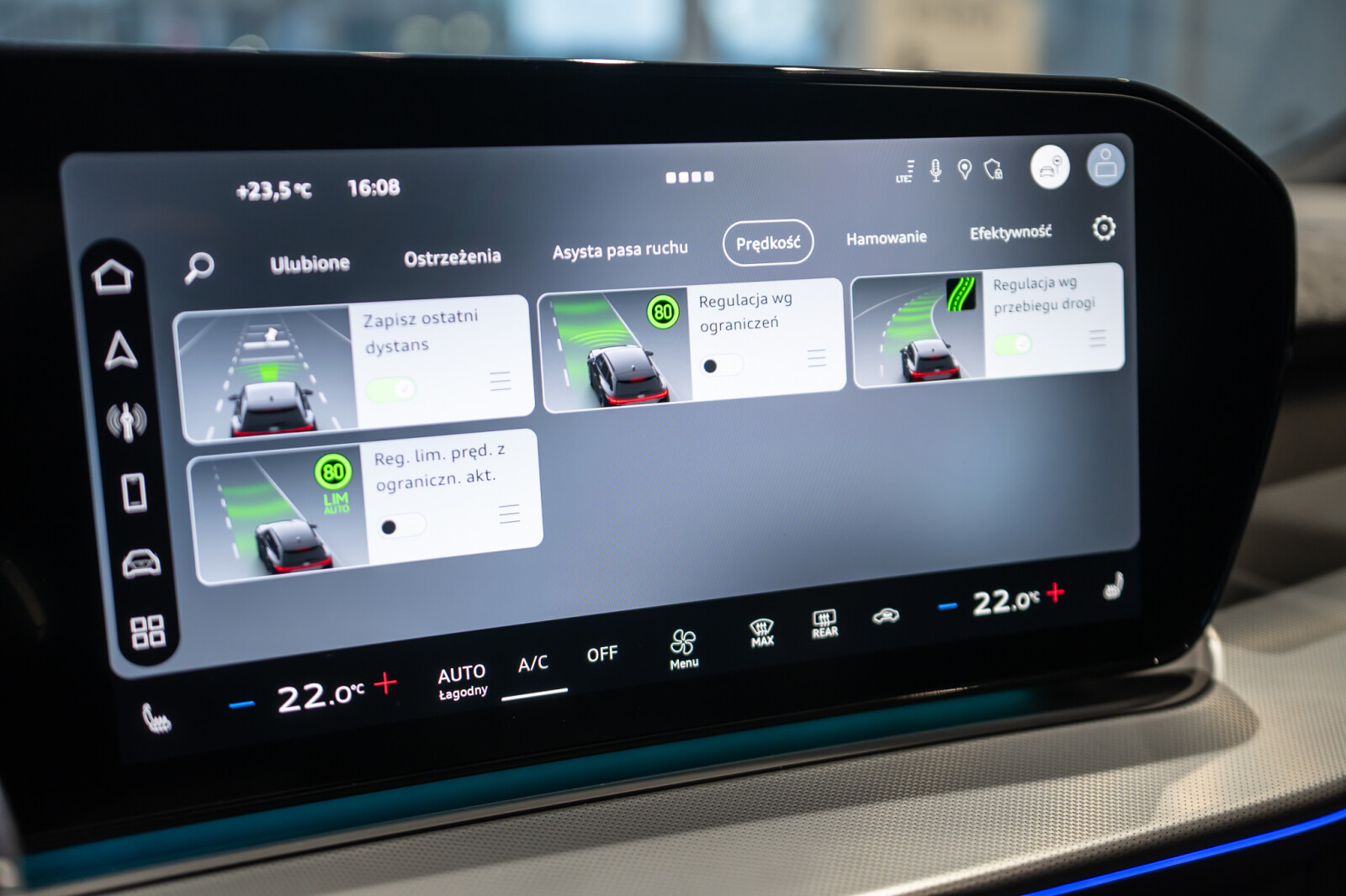 • adaptacyjny asystent prędkości z funkcją predykcyjnej regulacji prędkości