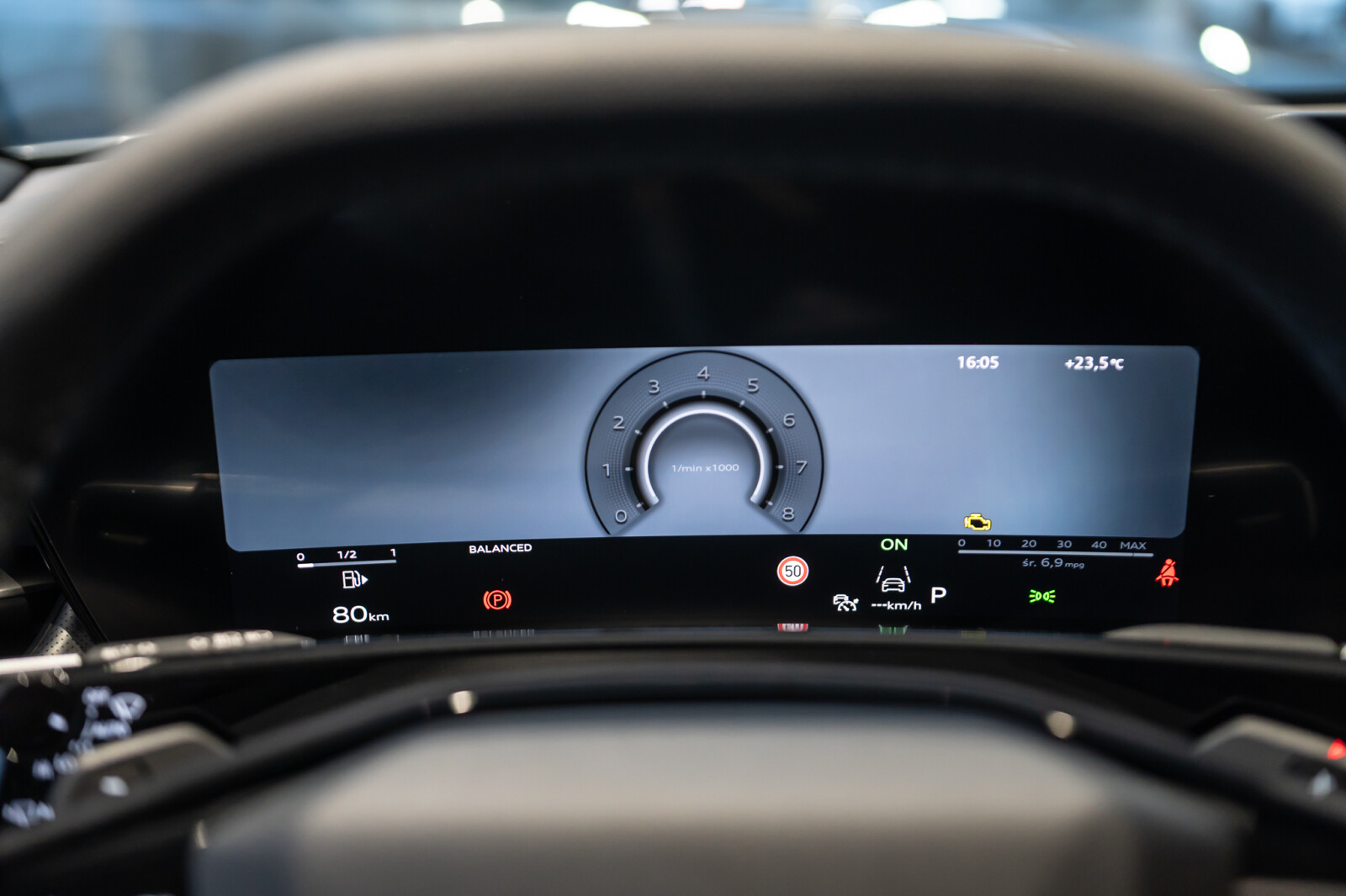 – Kierownica sportowa, 3-ramienna, spłaszczona u dołu i na górze, wielofunkcyjna, z przełącznikami zmiany przełożenia, bez elementów ze skóry naturalnej