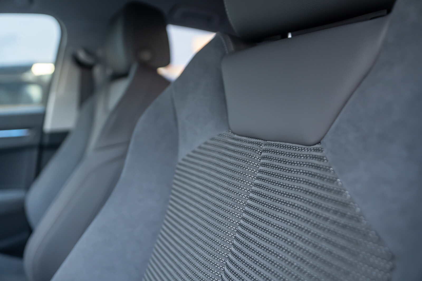• Sportowe siedzenia z tapicerką z tkaniny- Tkanina Syntax/skóra ekologiczna mono.pur 550 i z logo S line na oparciach przednich siedzeń