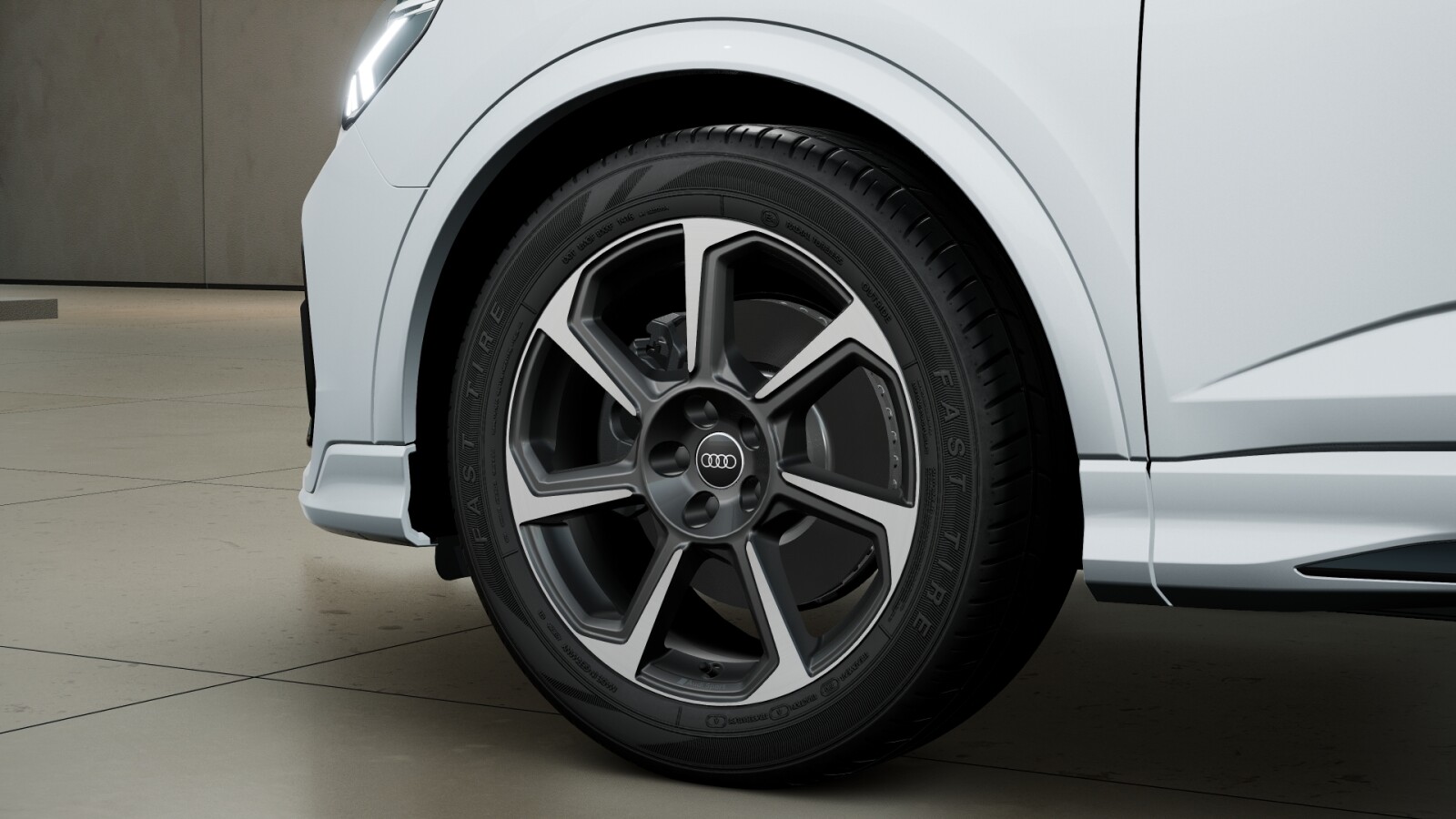 – Obręcze kół ze stopu metali lekkich Audi Sport 8,5Jx19″, kute, 7 – ramienne Rotor, antracytowo-czarne, z